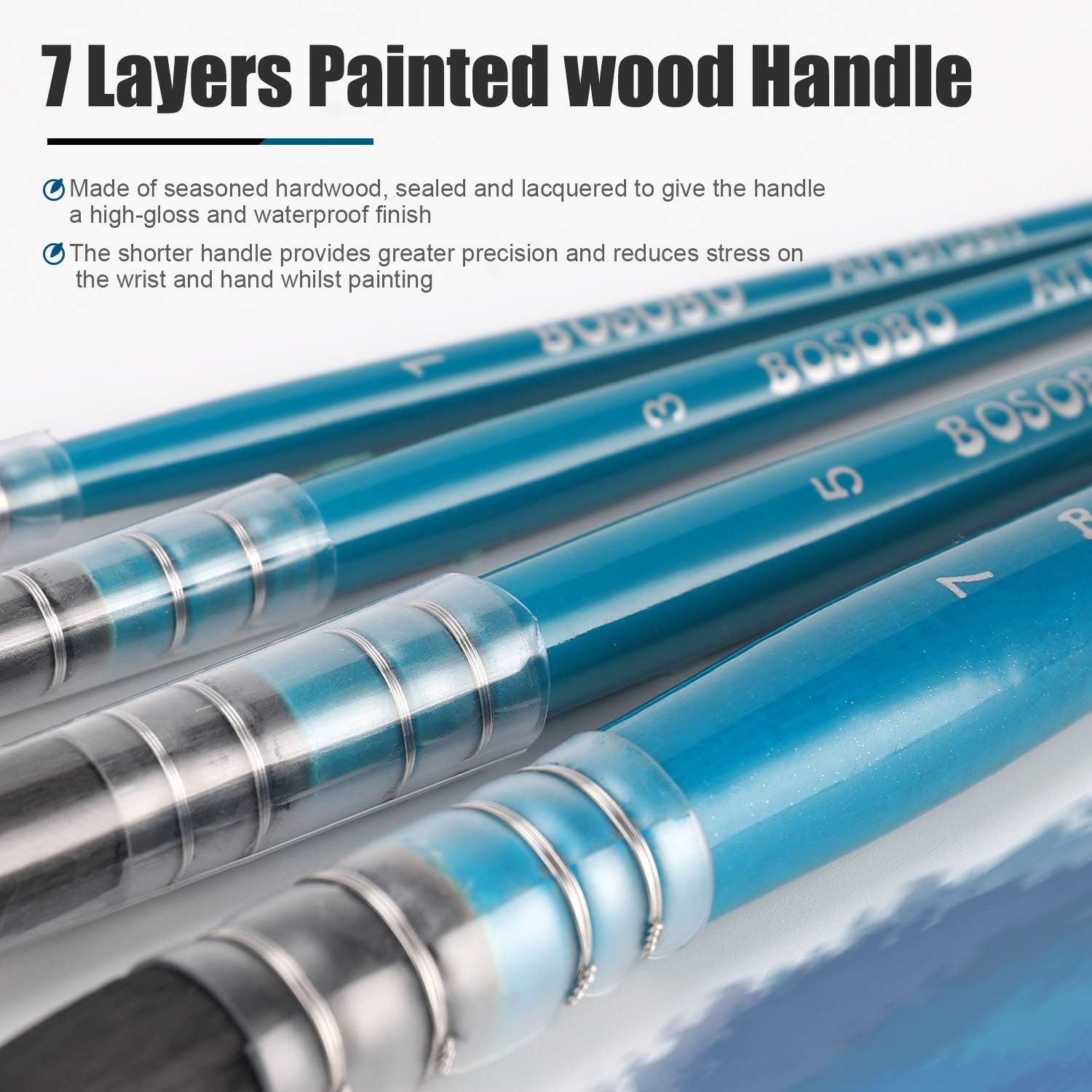- ► STURDY SHORT WOOD HANDLE: Carefully designed, made of seasoned hardwood, sealed and lacquered to give the handle a high-gloss and waterproof finish. Shorter handle provides greater precision and reduces stress on the wrist and hand whilst painting. Balance practicality and comfort, suitable for any temperament, speed, skill or style.