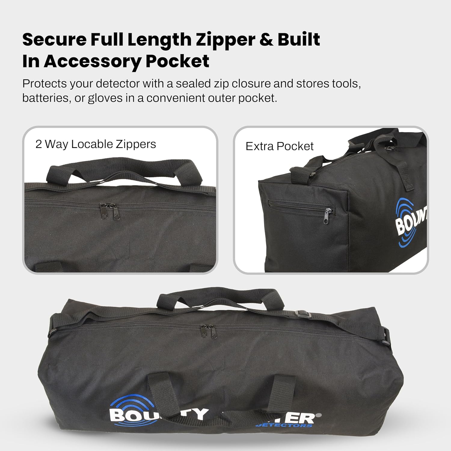 - Secure Zippered Closure with Carry Handles: The rust-resistant zipper and reinforced handles provide easy access and reliable transport. This padded detector bag ensures your gear stays safe during travel, storage, or while hiking to a dig site.