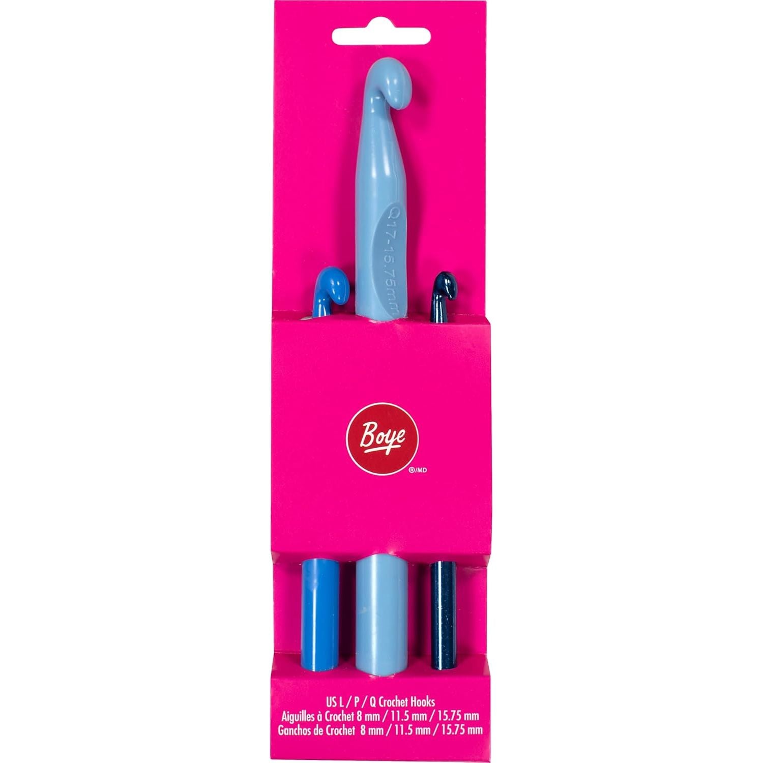 - Our Boye Ergonomic Crochet Hooks Set comes with 3 hooks, sizes 8mm, 11.5mm, and 15.75mm.