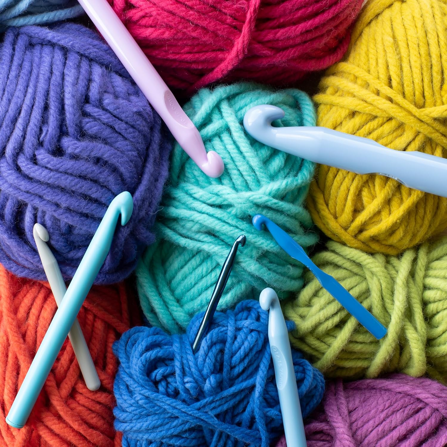 - Each of the plastic and aluminum crochet hooks in this crocheting supply set features an ergonomic handle for an easy grip.