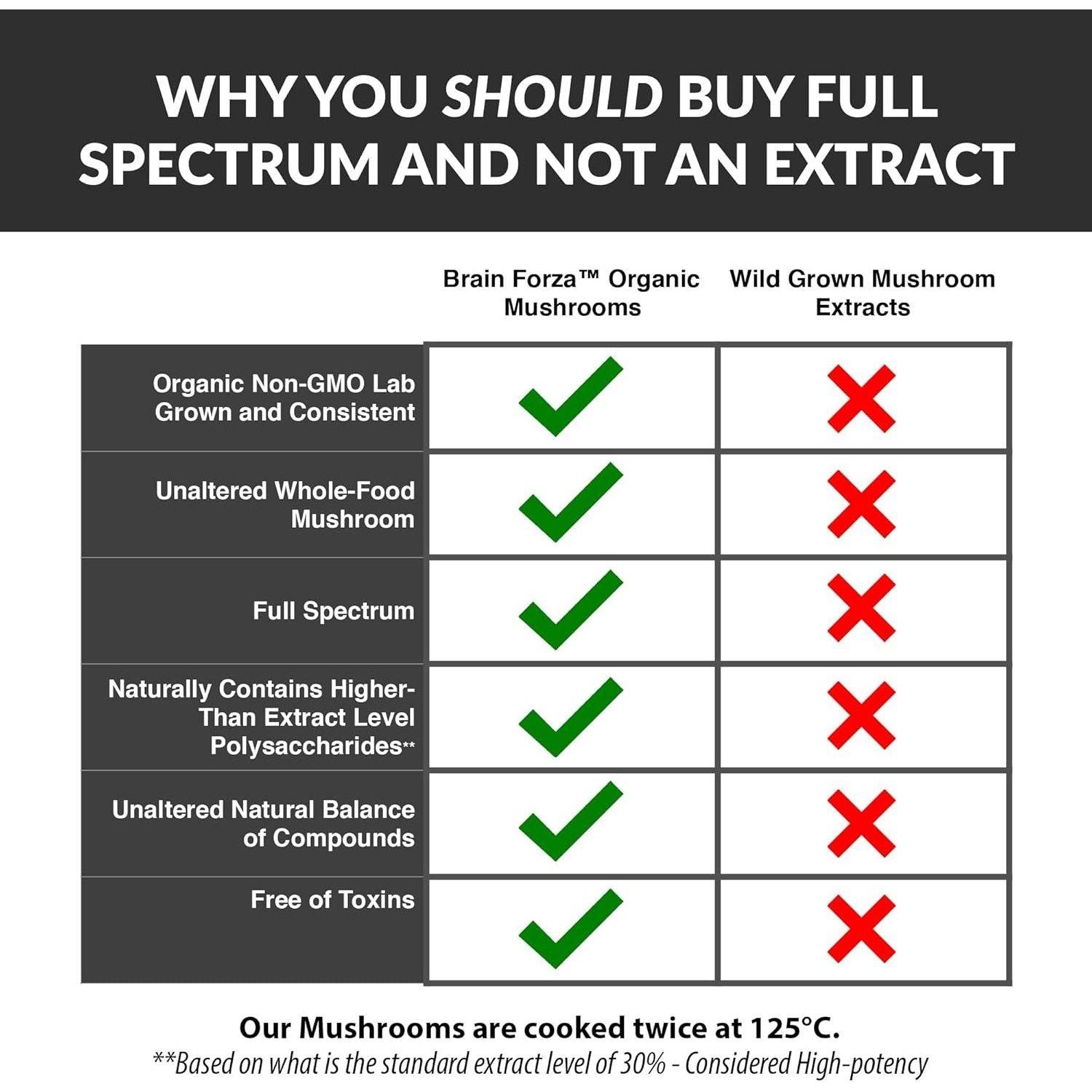 - Brain Forza Organic Lion's Mane Mushroom Capsules, Natural Supplement for Memory Support, Focus, Clarity, Nerve Health, Non-GMO, Vegan, Organic, 90 Capsules