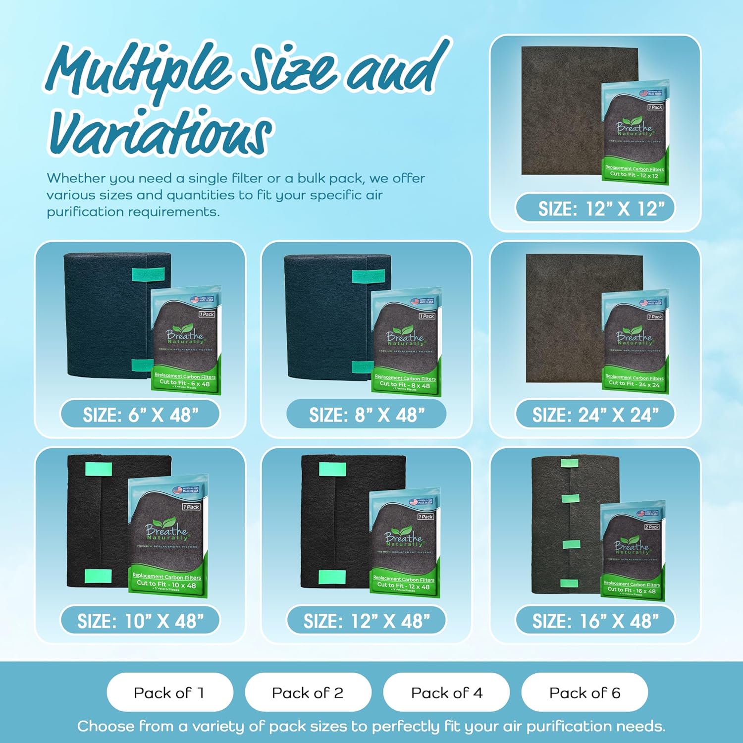 - Breathe Naturally Universal Cut to Fit Carbon Activated Air Filter - Replacement Charcoal Filters - Pre Filter Carbon Sheet for Air Purifier, Vent Filters & More - Made in USA (Pack of 1, 16x48)