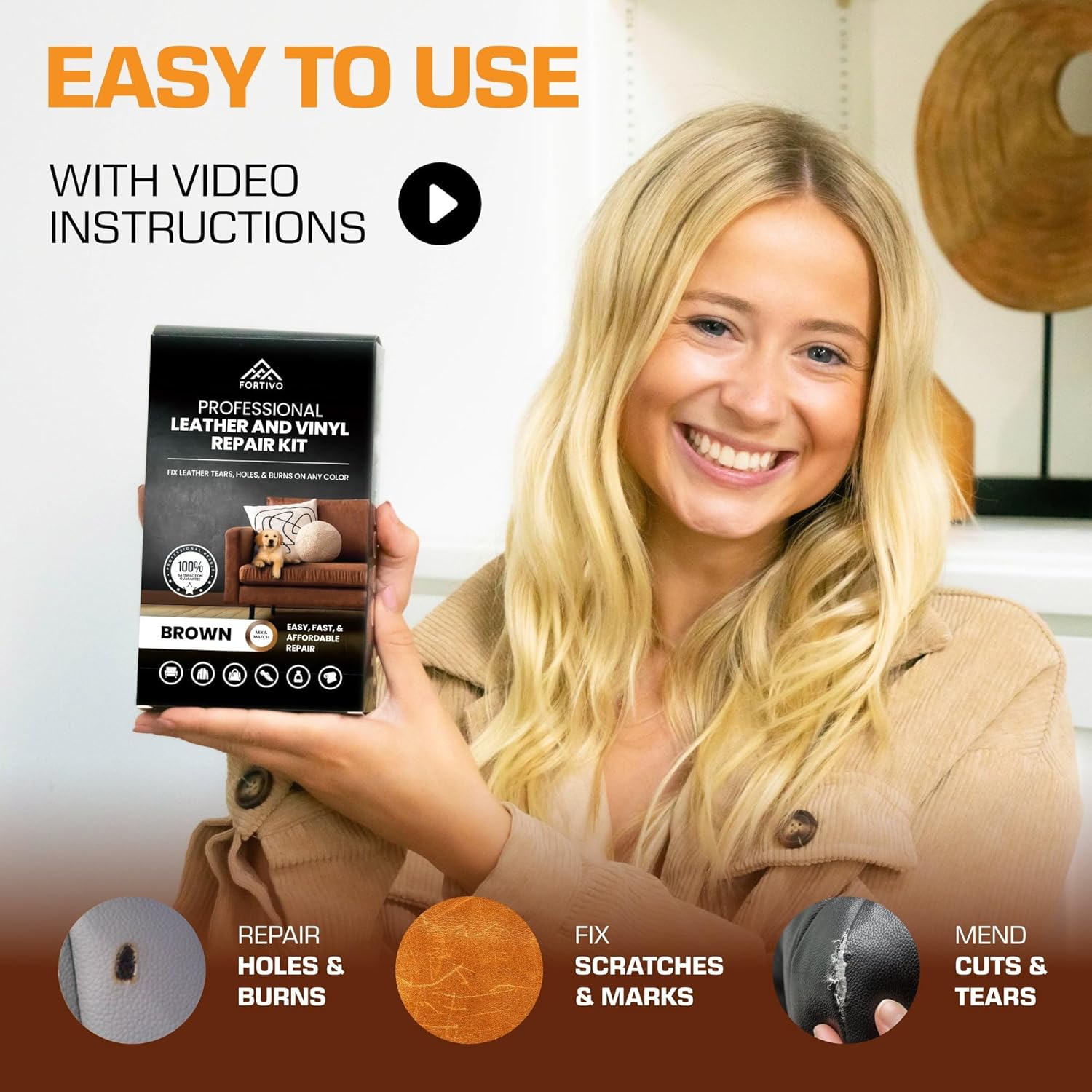 - Vinyl Repair Kit for Car Seats: Keep your leather looking brand new with the our vinyl seat repair kit. Our brown leather repair kit can fix various types of damage. Whether it's your favorite leather couch or seat, this car leather repair kit offers quality results in convenient steps.