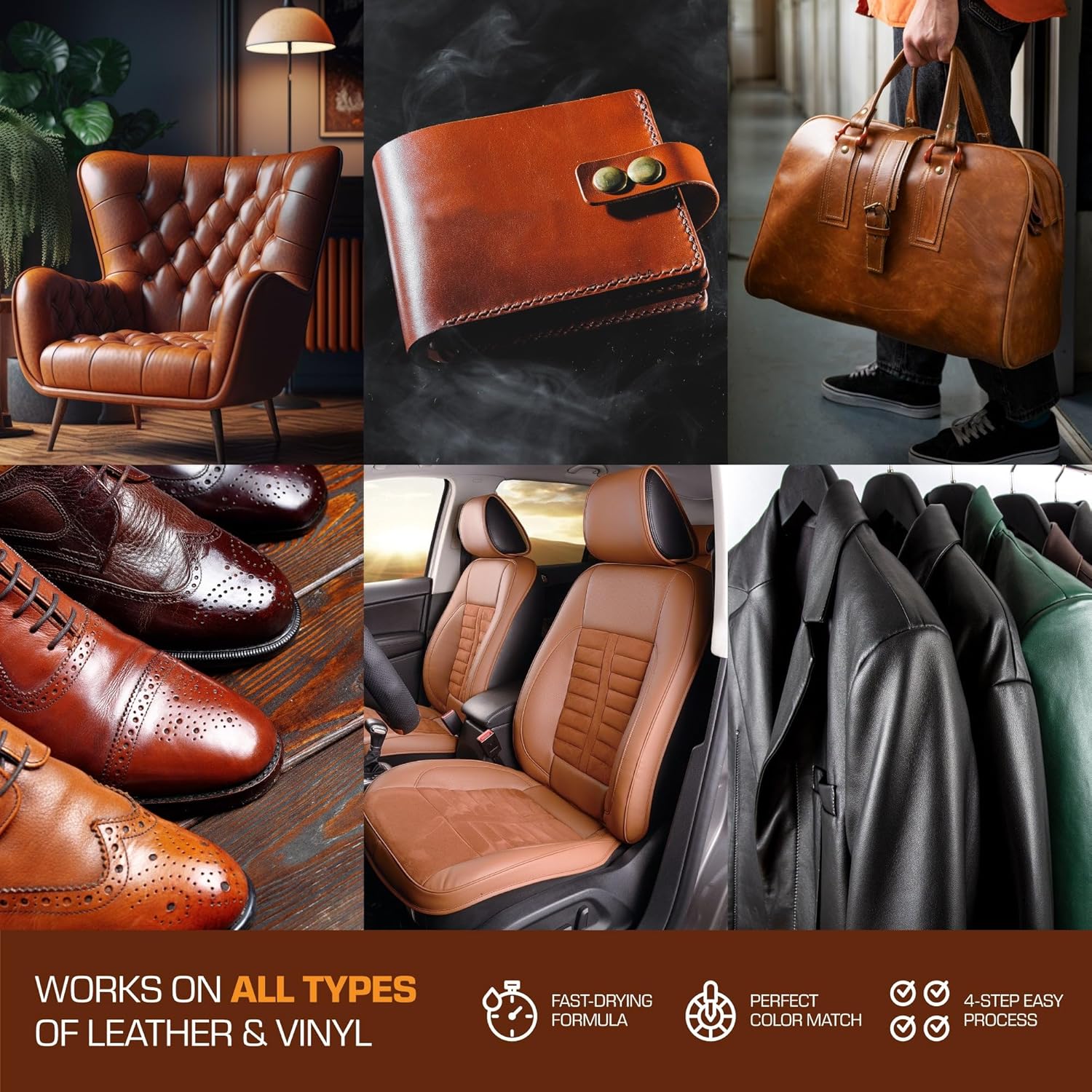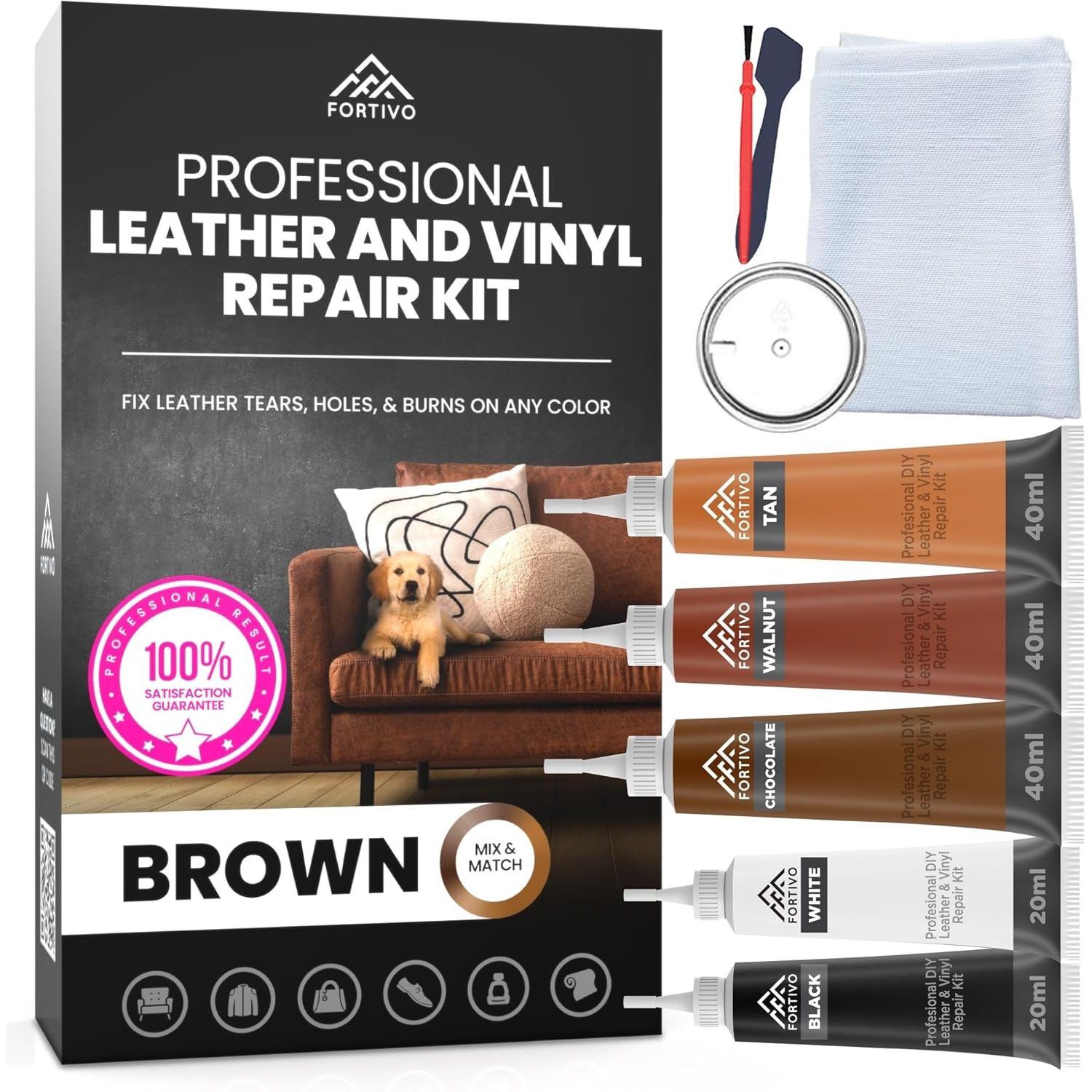 - Brown Vinyl Repair Kit - Leather Color Restorer for Couches, Furniture, Car Seats, Purse, Jacket, and More - Advanced Gel, Filler, and Scratch Repair, Easy Match Guide