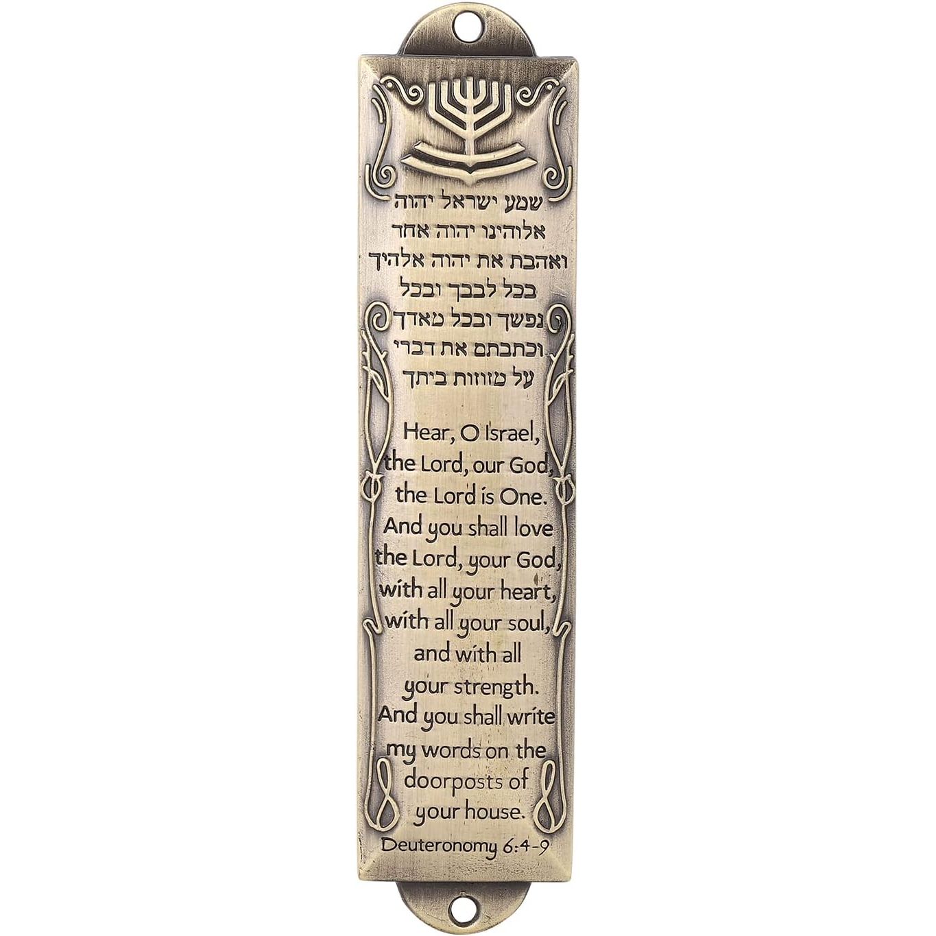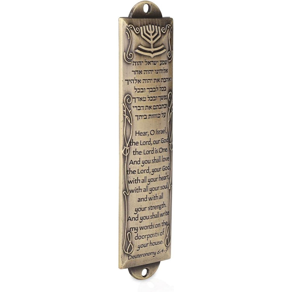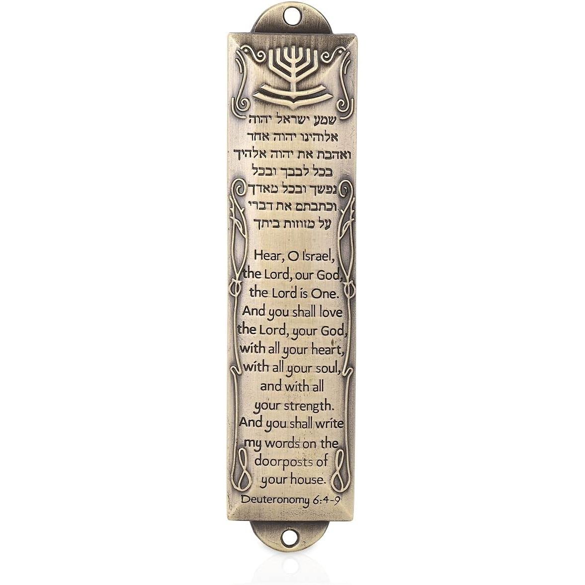 - BRTAGG Mezuzah Case, 5.3" Height, English & Hebrew Scripture, Bronze