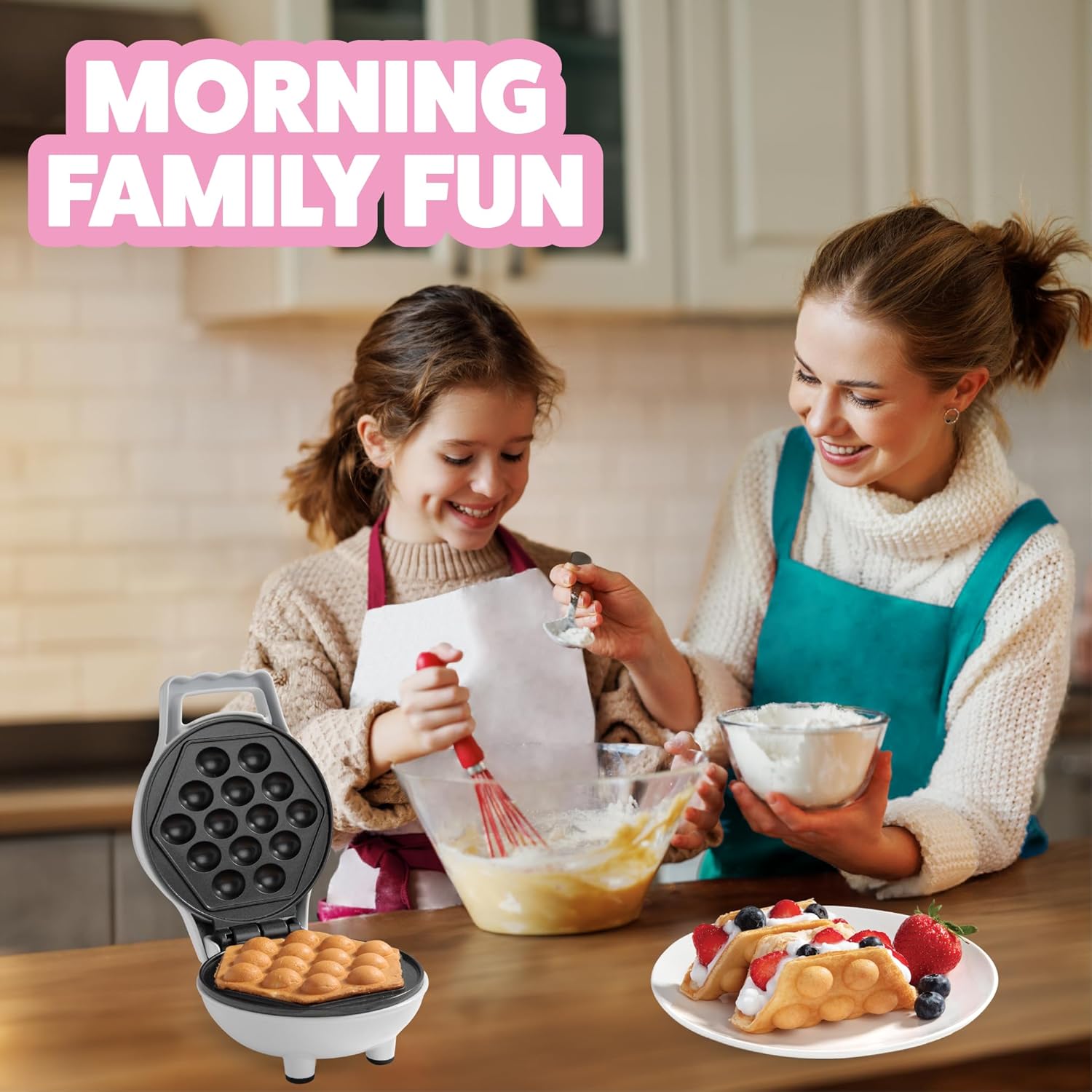 - Bubble Mini Waffle Maker- Special Holiday Breakfast w Tiny Hong Kong Egg Style Design, 4" Individual Waffler Iron, Electric NonStick Baker w Recipes- Ice Cream Treat Dessert, Dorm Essential Xmas Gift