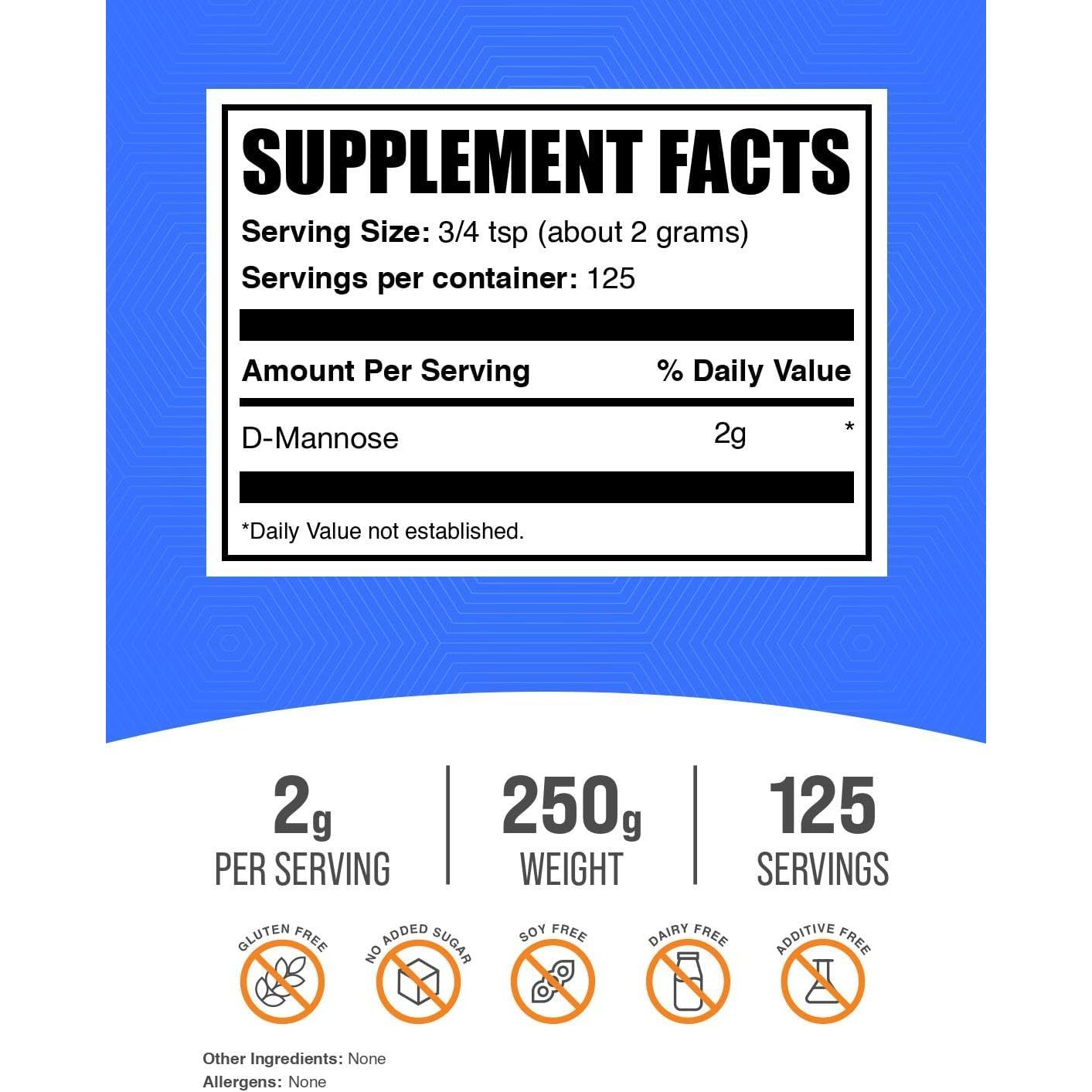 - BulkSupplements.com D-Mannose Powder - D-Mannose Supplement, for Urinary Tract Health - Unflavored & Gluten Free, 2g per Serving, 250g (8.8 oz) (Pack of 1)
