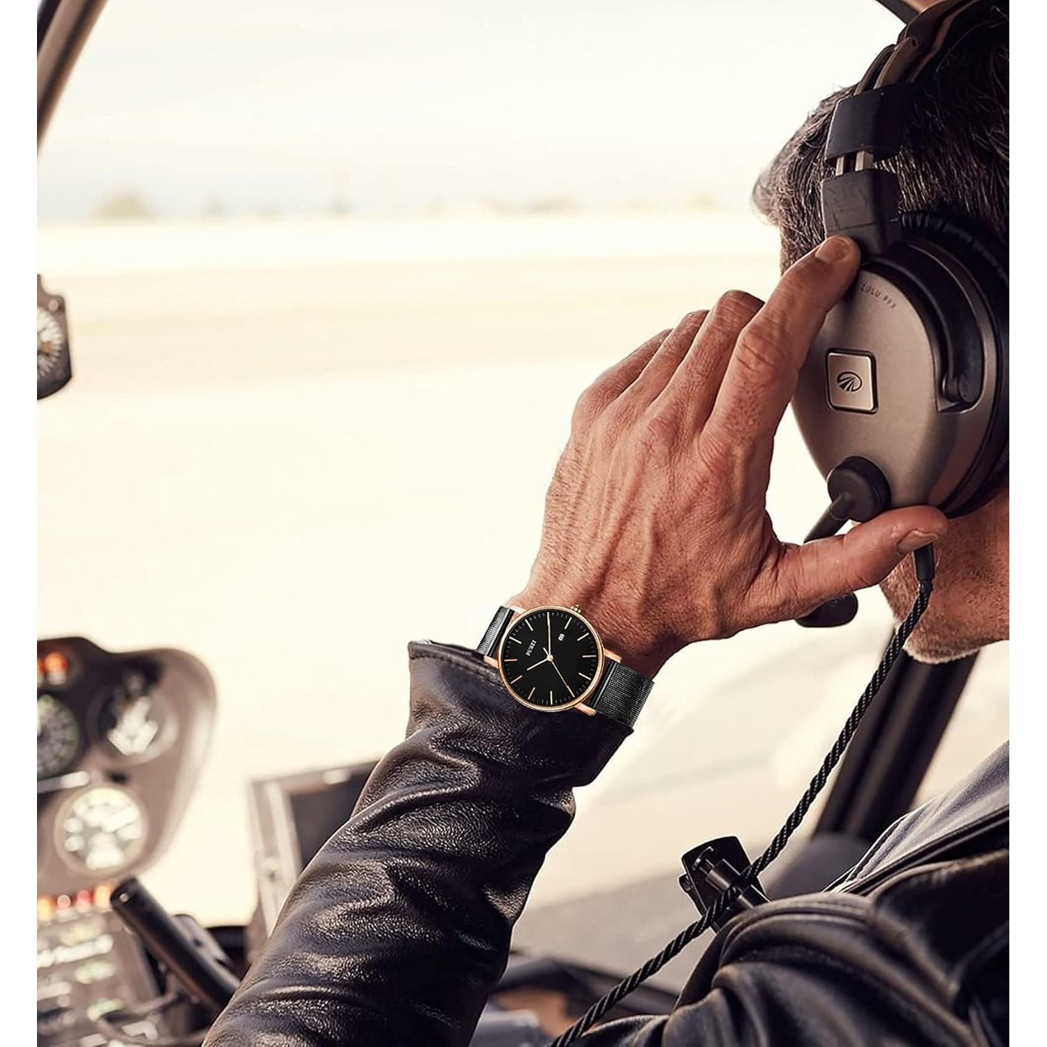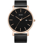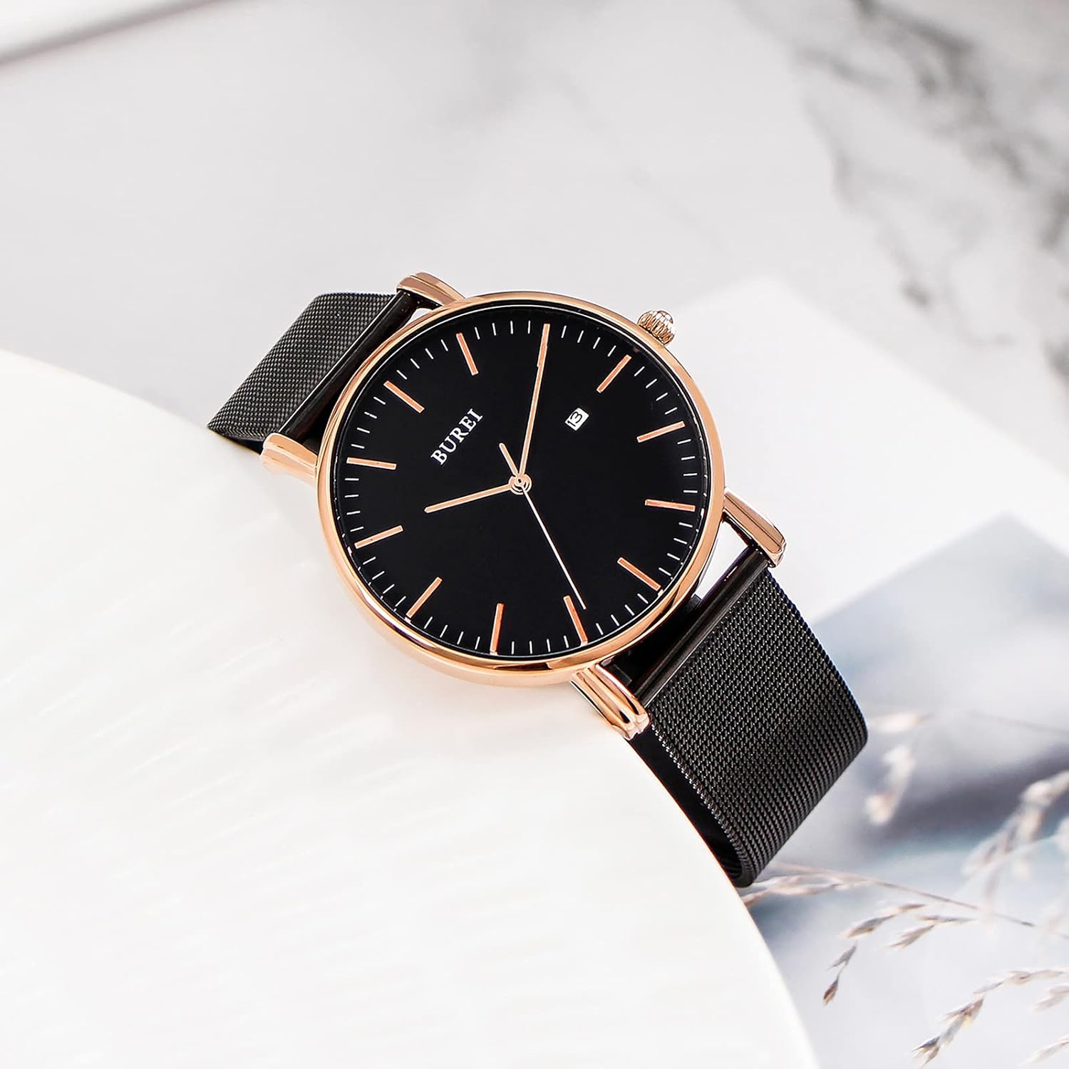 - BUREI Men's Fashion Minimalist Wrist Watch Analog Date with Stainless Steel Mesh Band (Black Rose Gold)