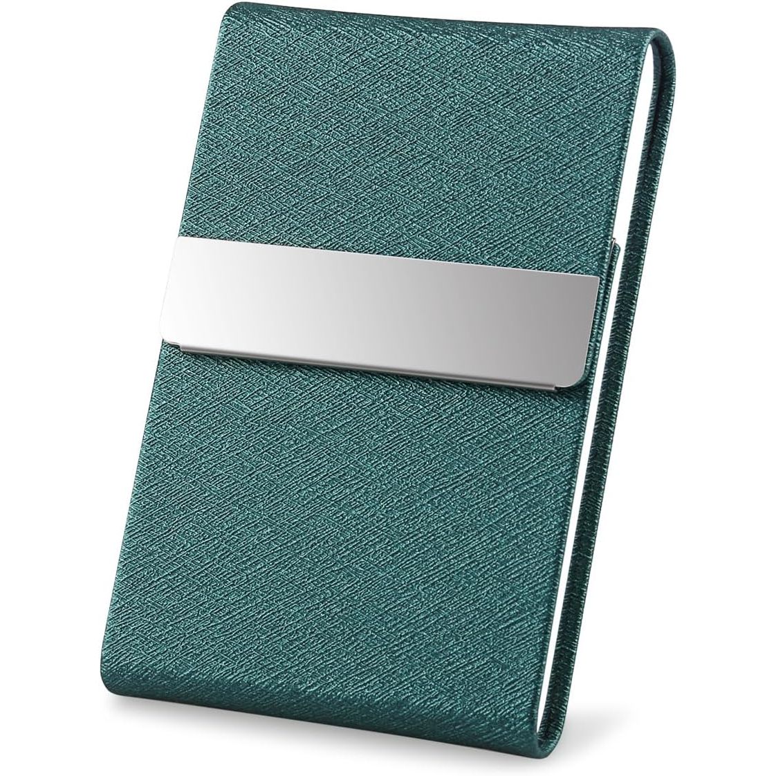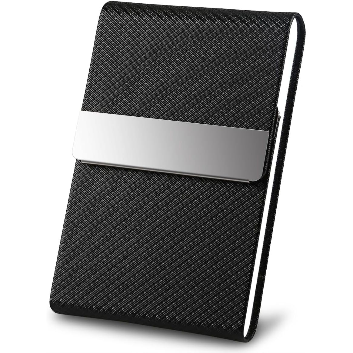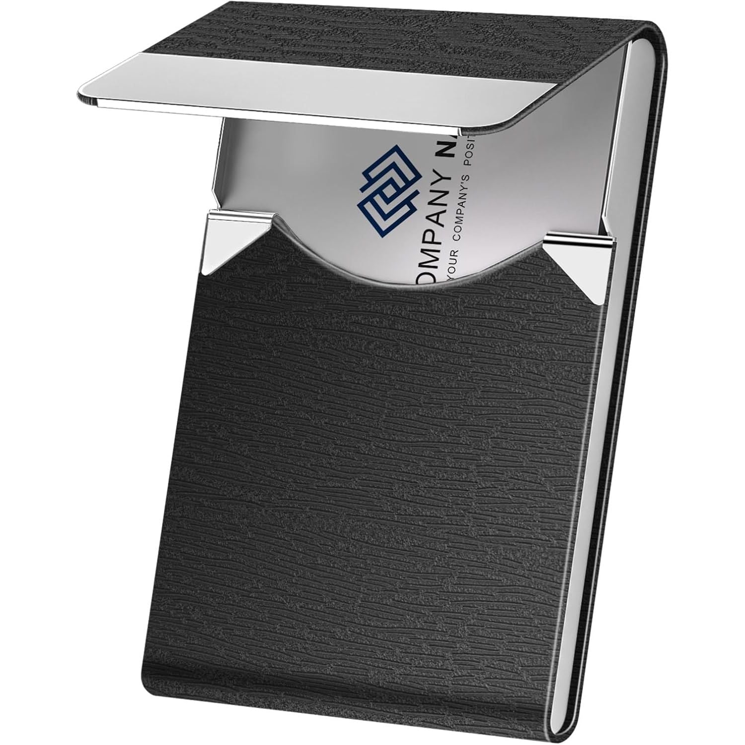 - Business Card Holder, Metal Slim Business Card Case, Pocket Card Holder for Women or Men, PU Leather Business Card Holder Case RFID Blocking Name Card Holder with Magnetic Closure, Black Carbon