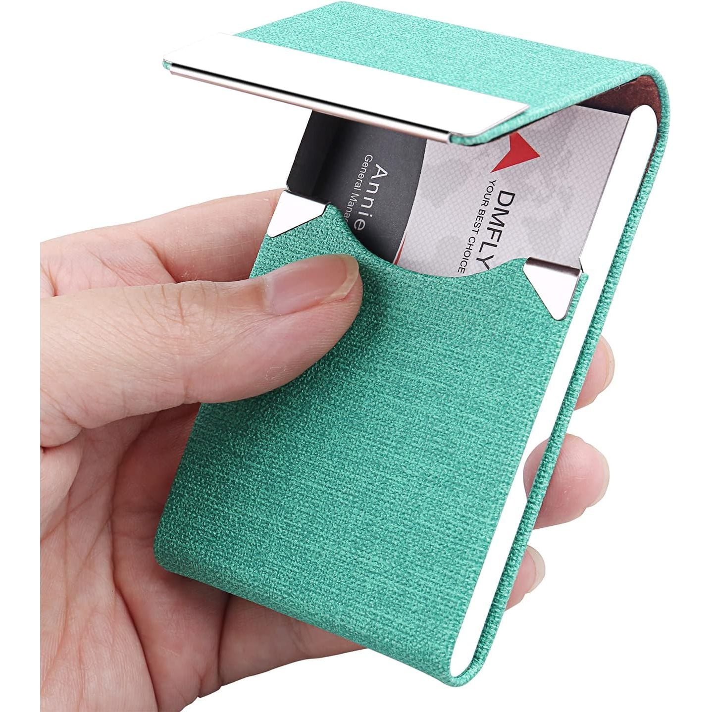 - DMFLY leather business card holder case - Perfect purse size and classy looking, let you feel confident pulling it out of your pocket and handing somebody a card.