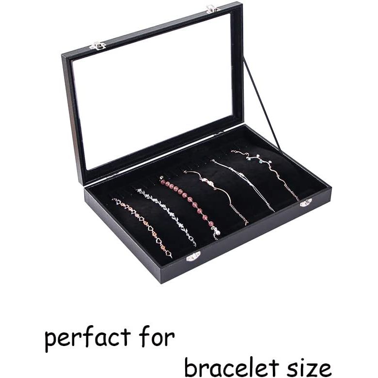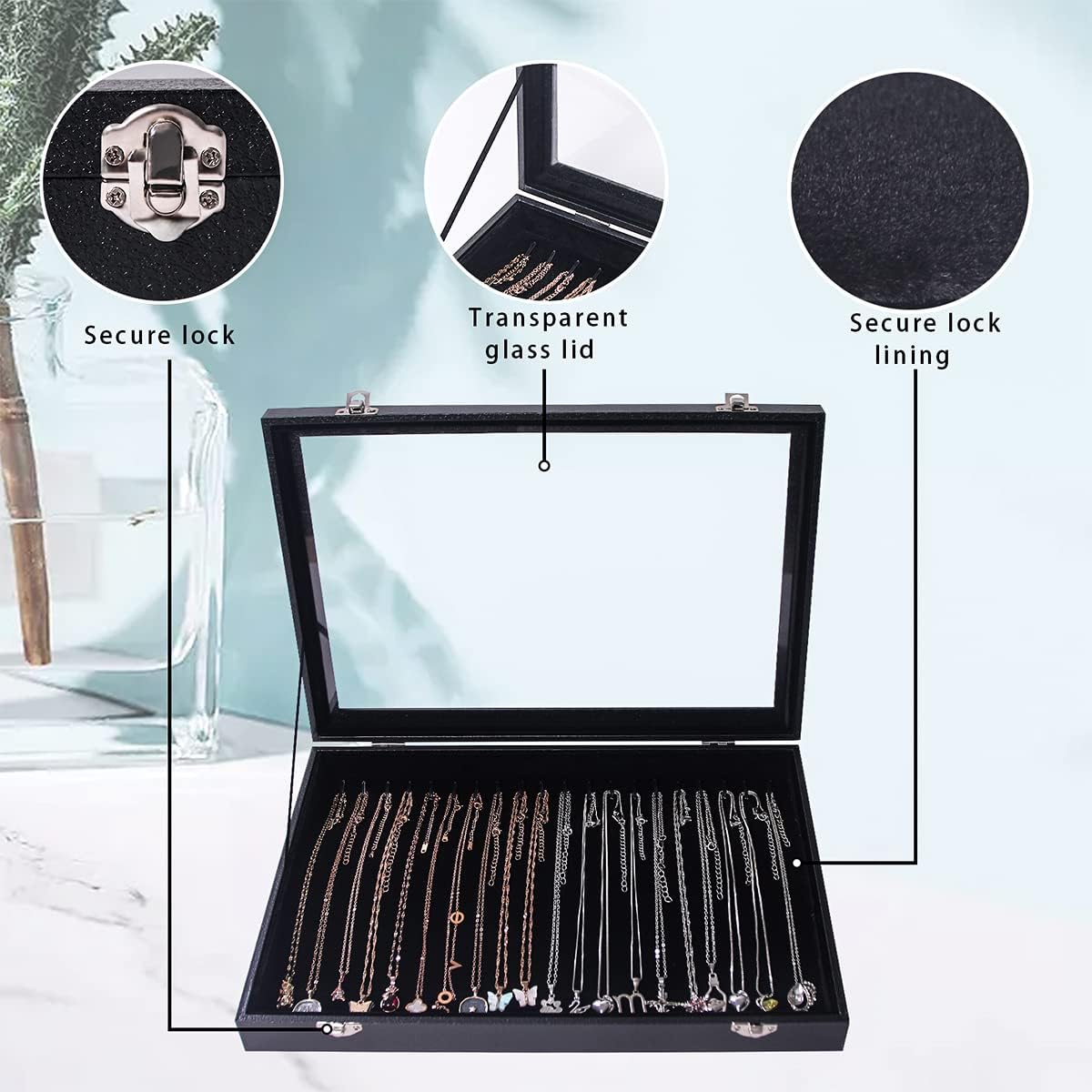 - Necklace display case comes with a clear glass lid that gives a clear view of the jewelry you're storing, while keeping it free from dust and oxidation