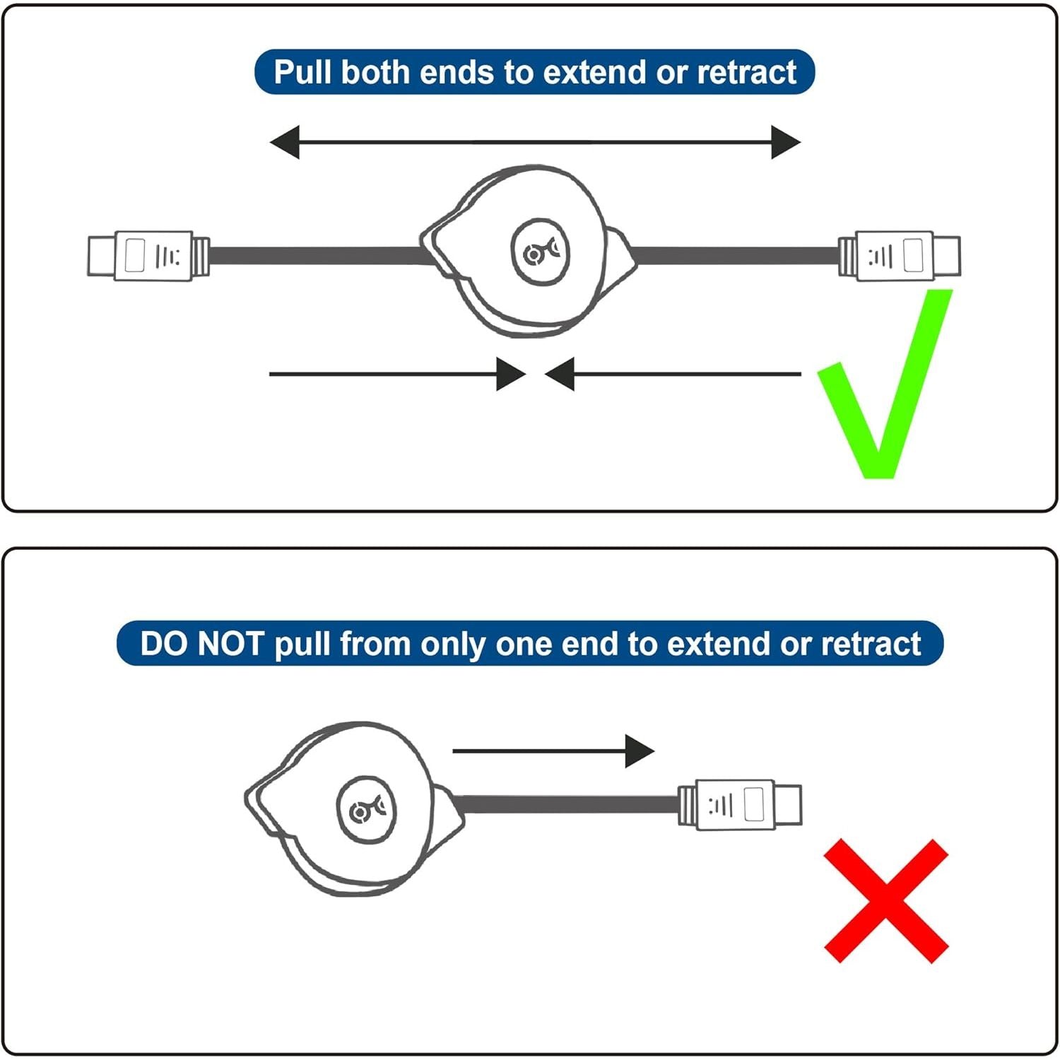 Pull the cable from both ends when extending and retracting