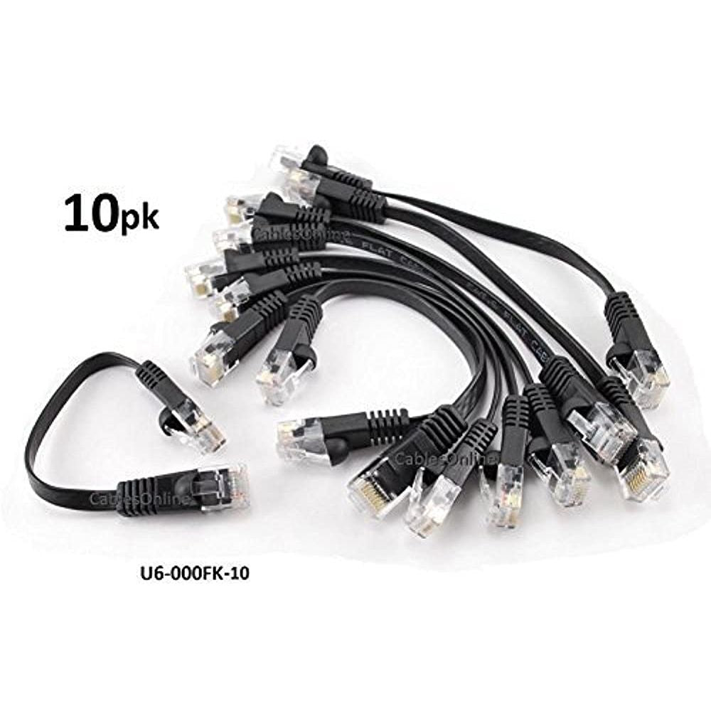 - CablesOnline, 10-Pack 6-inch CAT6 Network UTP Ethernet RJ45 Flat-Design Patch Black Cable, (U6-000FK-10)