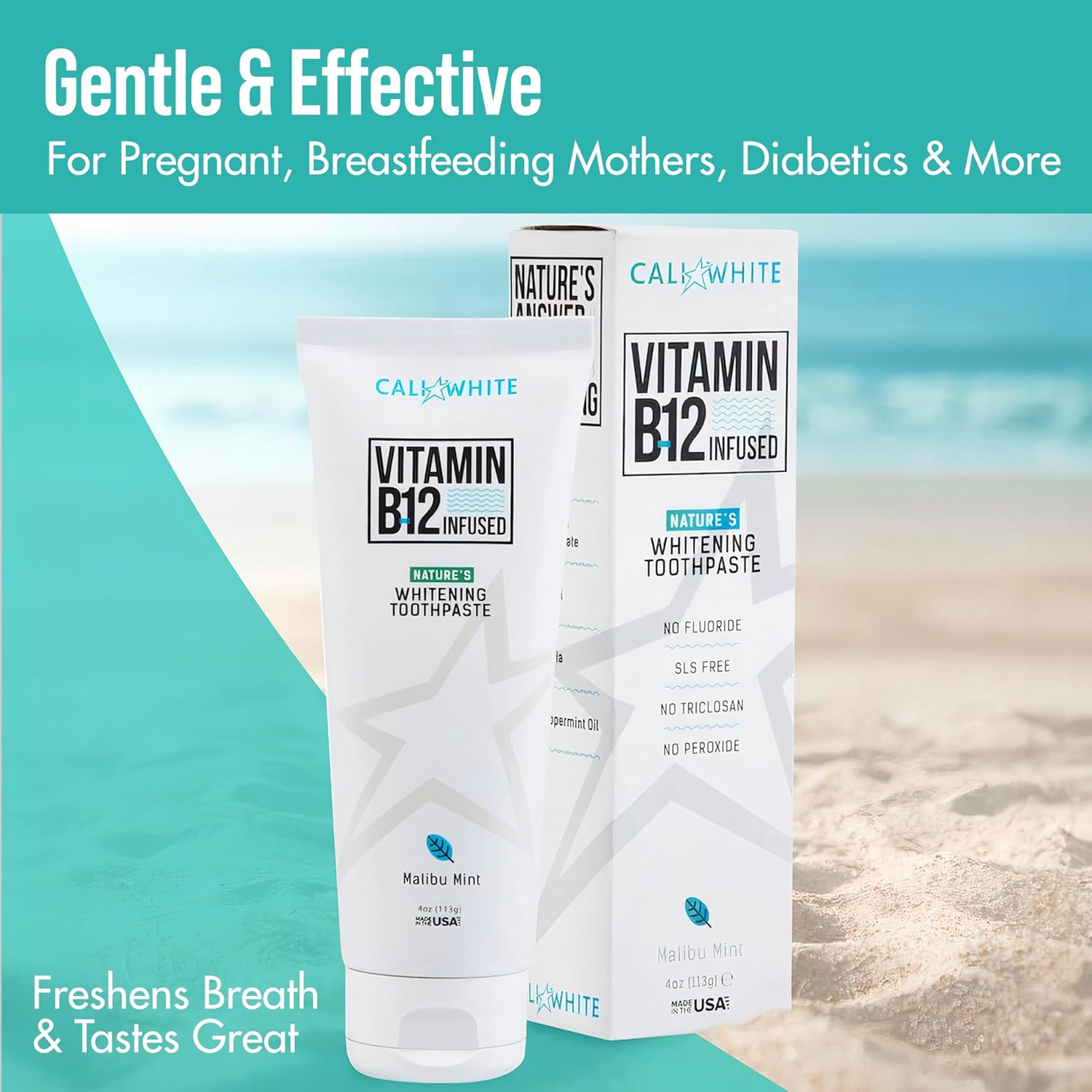 - Cali White No Fluoride Whitening Toothpaste, Infused with Vitamin B12, Pacific Mint, 4 Ounce (1 Pack)