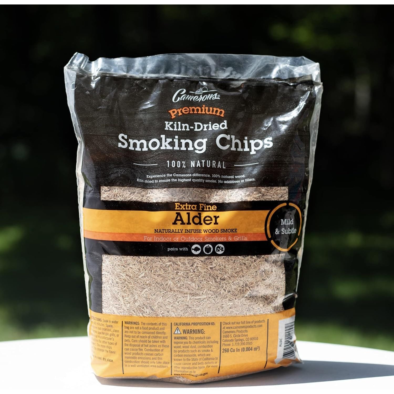 - Camerons All Natural Extra Fine Alder BBQ Wood Chips - 260 Cu. In. Bag, Approx 1.8 Pounds- Kiln Dried Sawdust Shavings for Cocktail Smoking Guns, Smokers, Smoke Boxes - Barbecue Grilling Gifts for Men