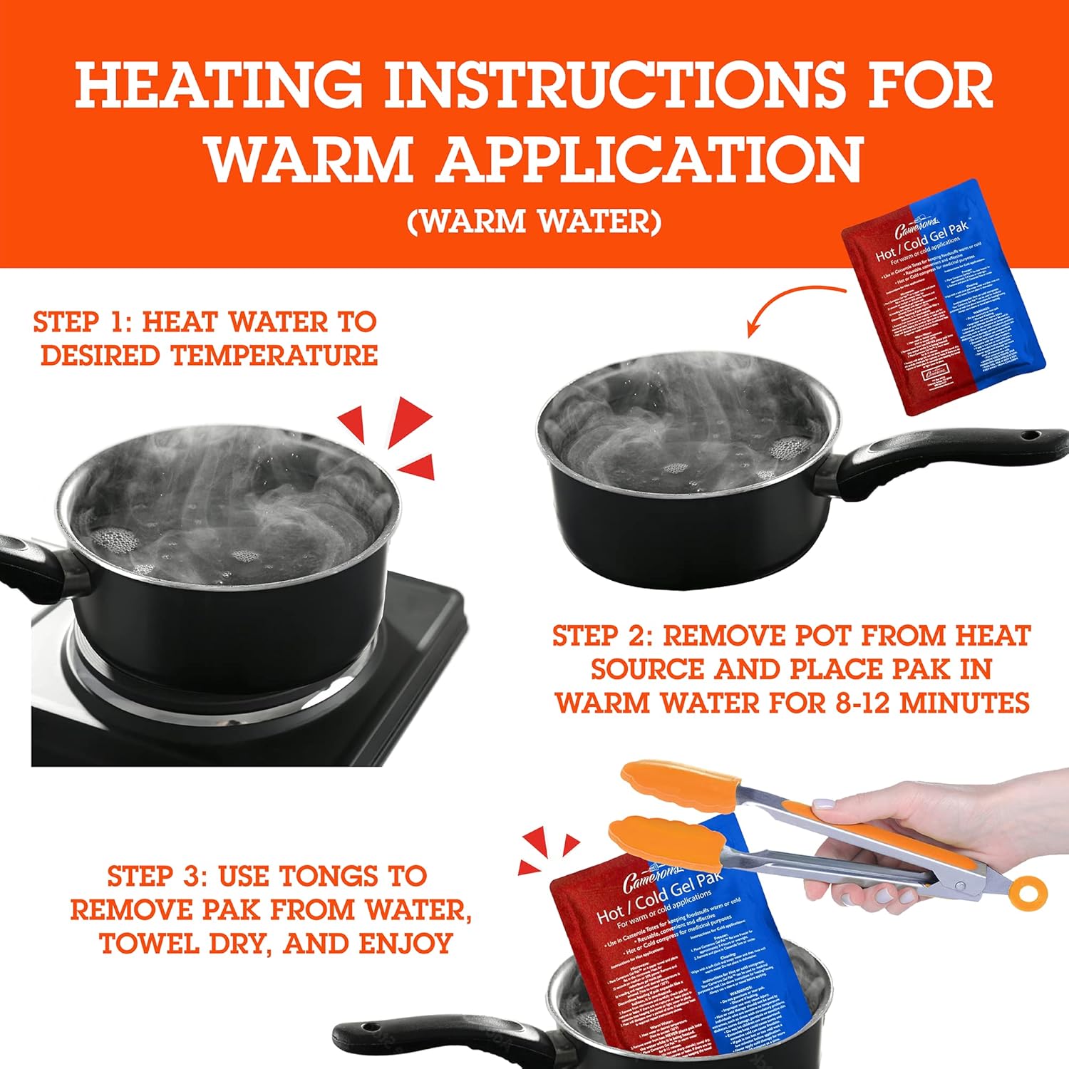 - Instructions: To heat the Camerons Gel Pak, place in microwave in 40 second intervals until reaches desired temperature, or place in warm water for 8-12 minutes. To freeze the Gel Pak, place in the freezer for several hours or overnight.