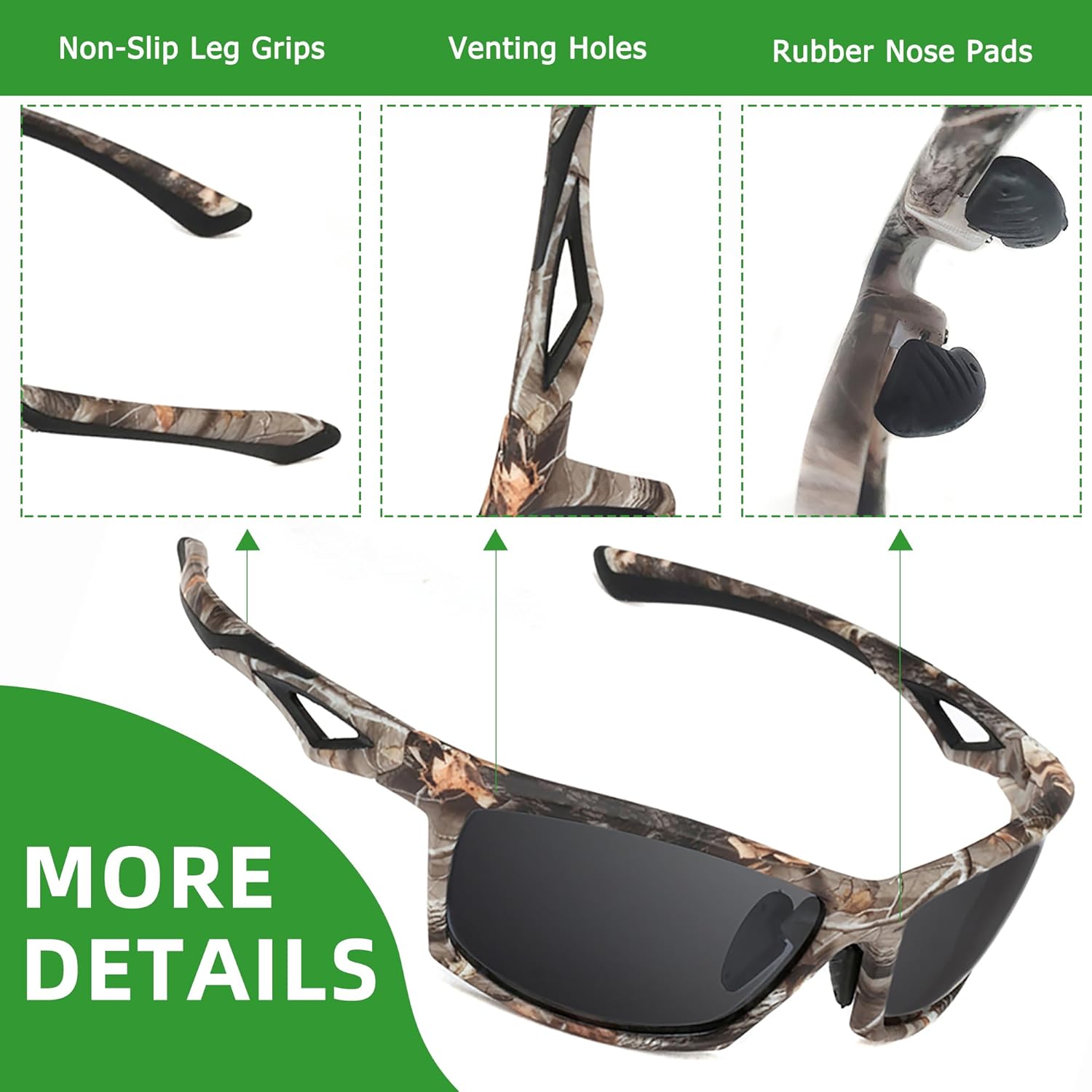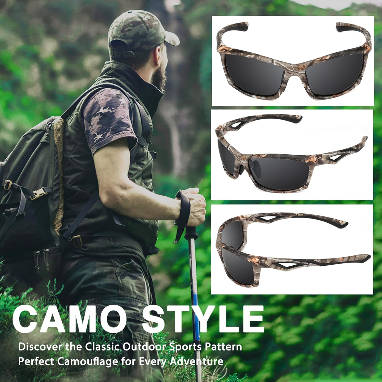 Camo Polarized Wrap-around Sport Sunglasses for Men Women UV400 Driving Fishing Hunting Sun Glasses
