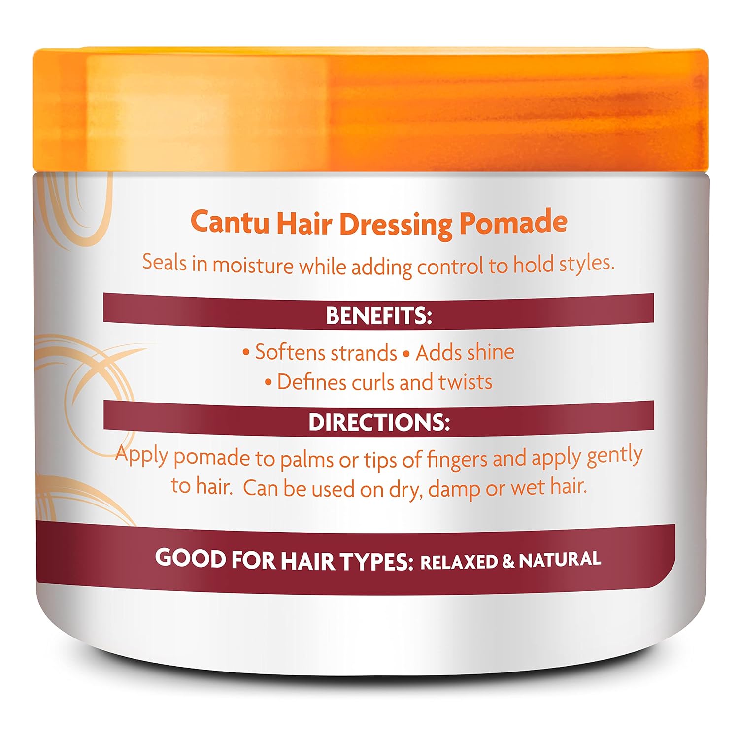Cantu Hair Dressing Pomade with Shea Butter puts hair care and style in your hands, allowing you to confidently shape the look you desire without fear of dehydration or clogged hair follicles. Our shea butter formula seals in crucial moisture and helps soften strands while you work on your perfect look. Get the same natural shine you love with a pomade formula that has hair health in mind. Perfect for defining edges and flyaways, cultivating your curls, and controlling your twists exactly how you like while staying hydrated and healthy.