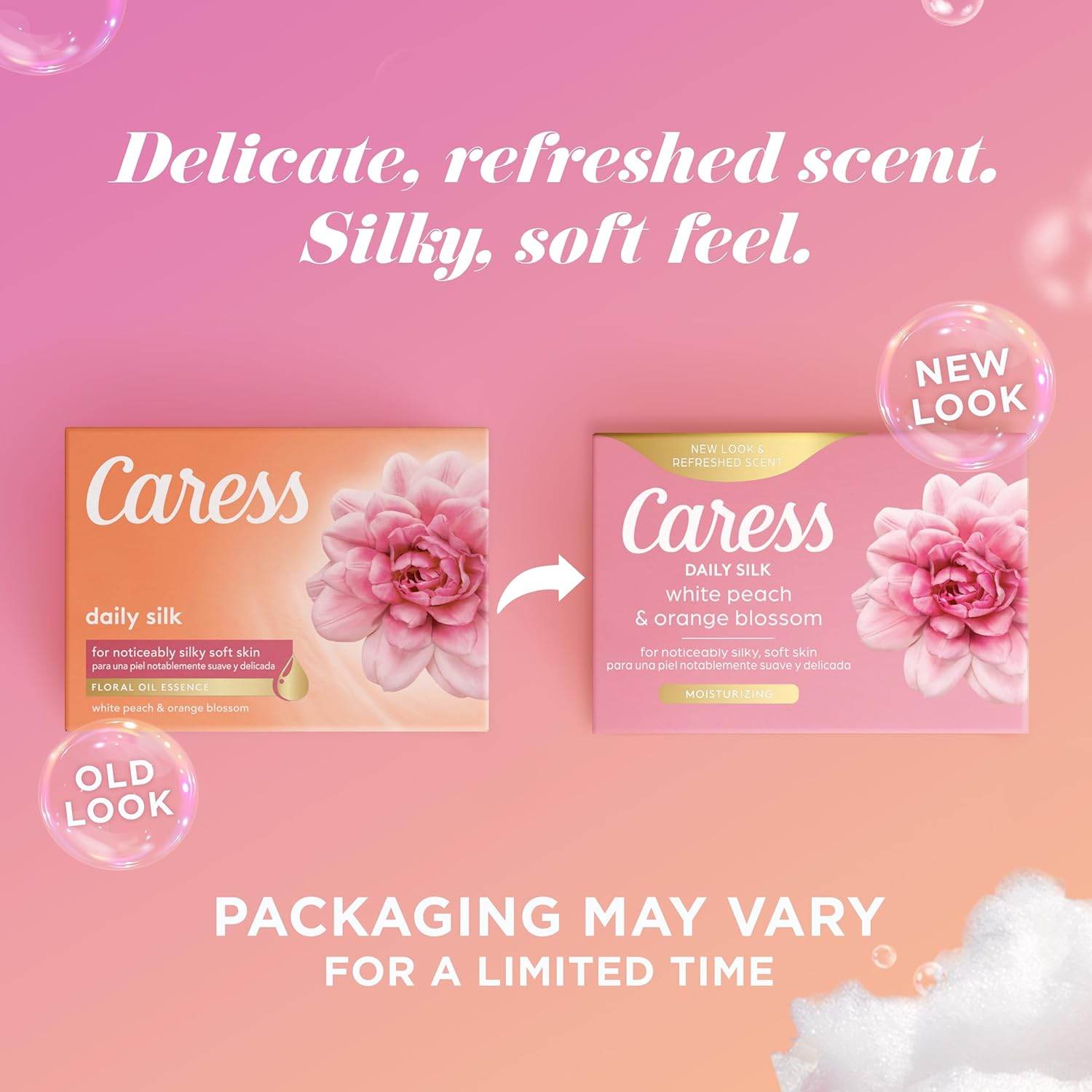 - Caress Daily Silk is a silkening beauty bar infused with the delicate floral notes of White Peach and Orange Blossom