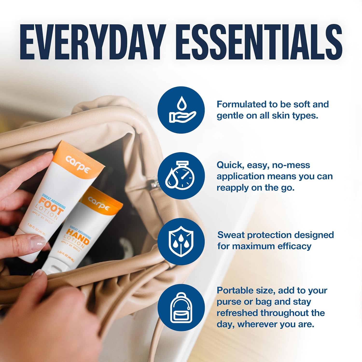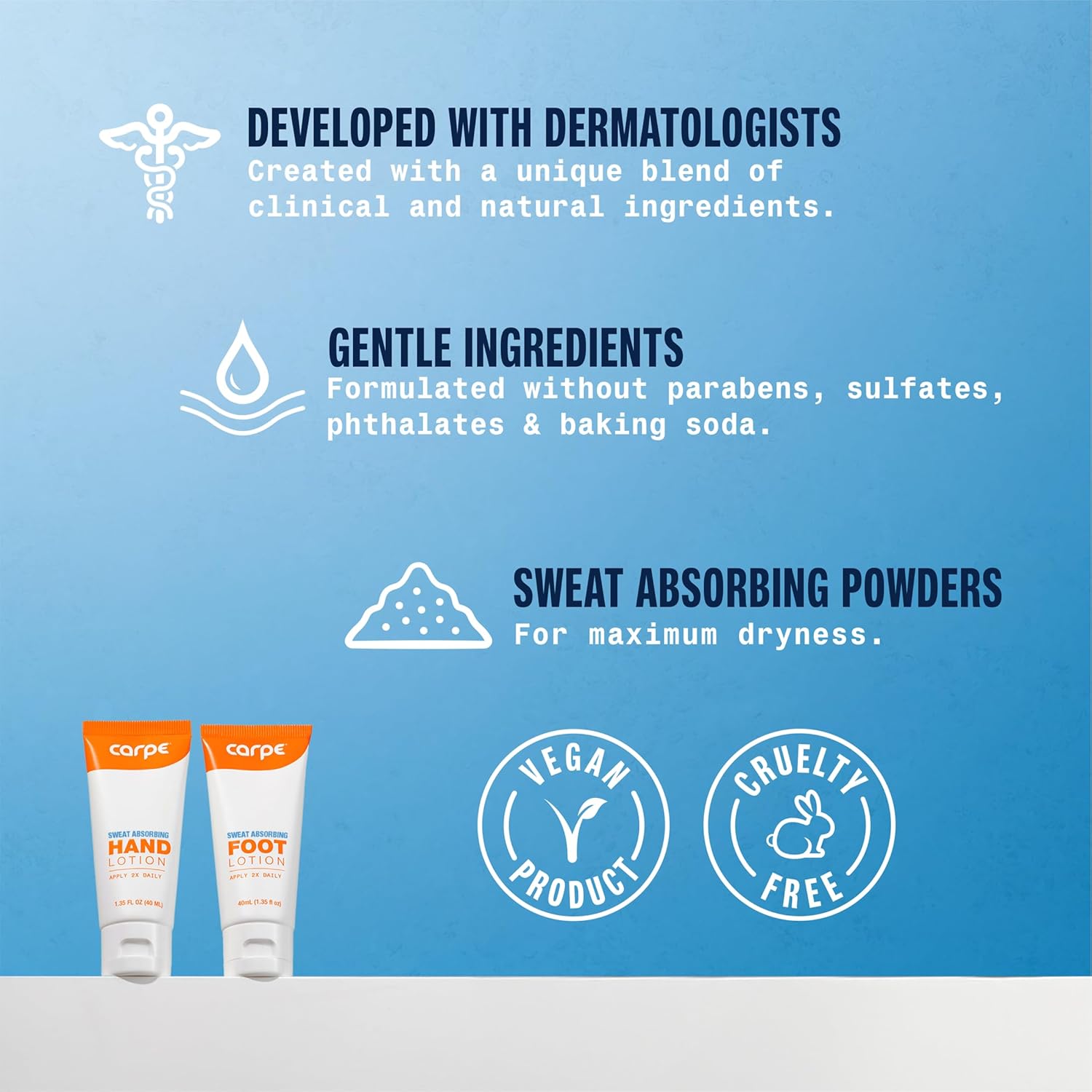 - Carpe Sweat Absorbing Hand and Foot Lotion Bundle (3 Hand and 3 Foot Tubes), Stop Sweaty Hands and Sweaty, Smelly Feet, Dermatologist-Recommended