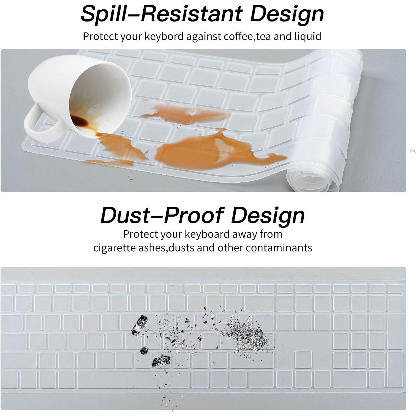 - 【ANTI-SPILL & DUST-PROOF】-Waterproof and dustproof, environmentally protective and ideal for resistance against your keyboard against everyday spills (coffee/beer/milk), dust (crumbs/powder), liquid, pet's pees or the other incident.