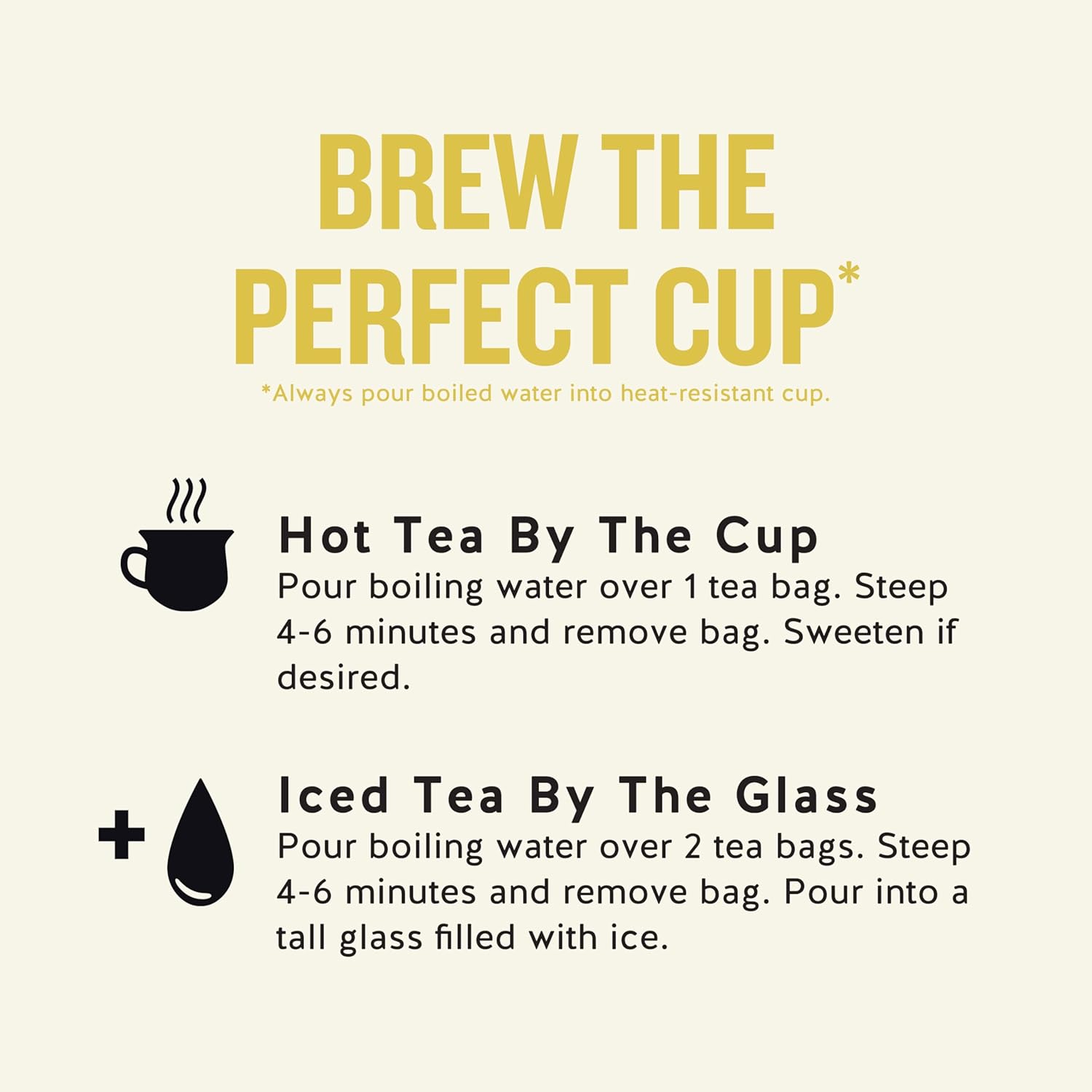 - Your Perfect Cup: Steep the tea bag in hot water for 4-6 minutes and remove the bag for comforting hot tea. Use the same process over 2 tea bags and serve over ice for a refreshing glass of iced tea.