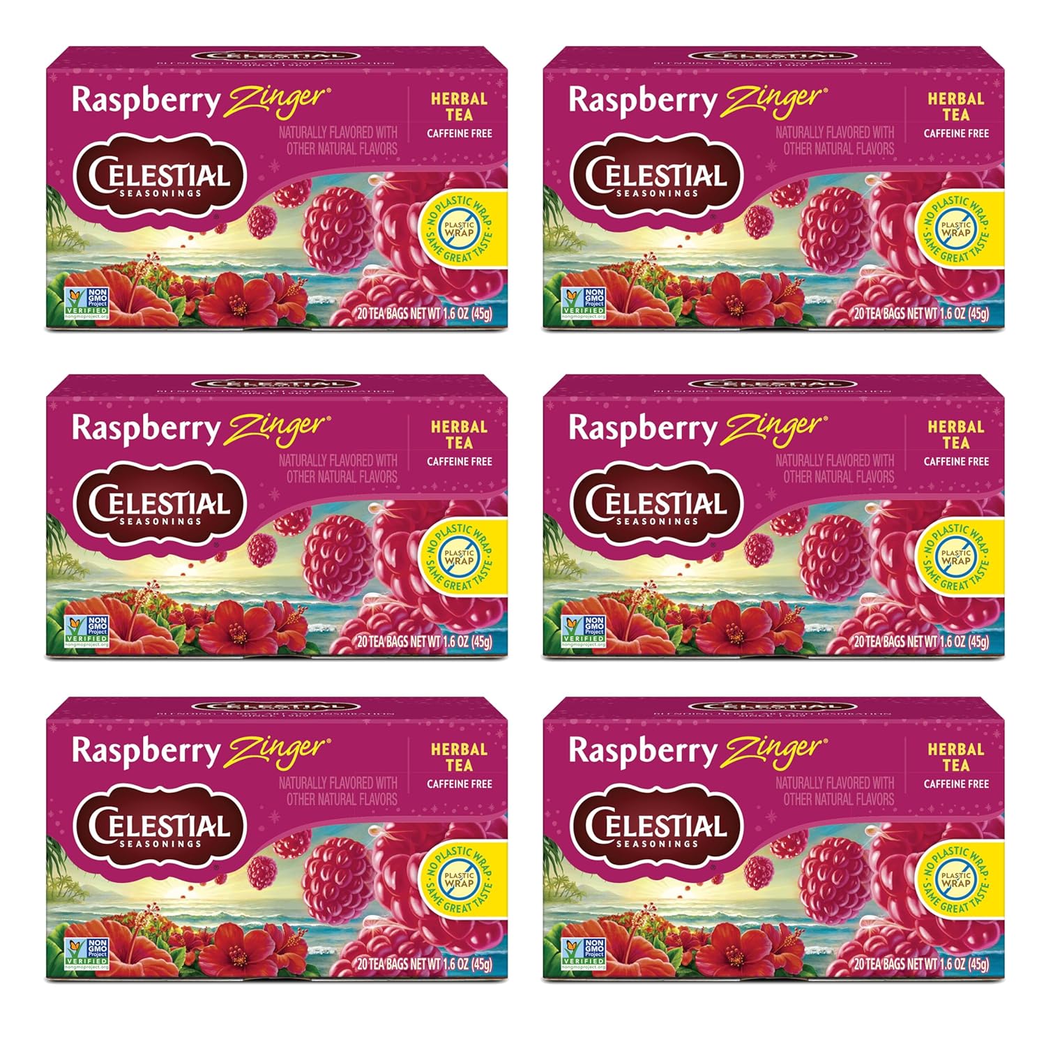 - Celestial Seasonings Lemon Zinger Herbal Tea, Caffeine Free, 20 Tea Bags Box, (Pack of 6)