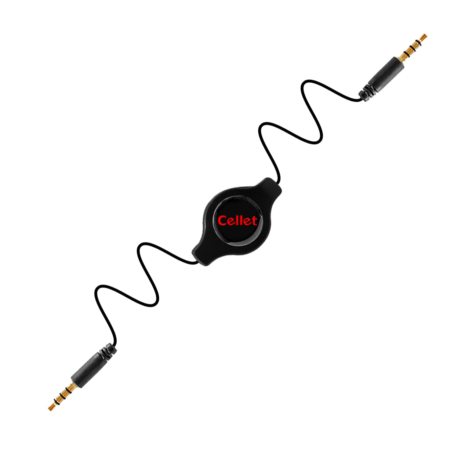 - Cellet Retractable Stereo Auxiliary Cable – 32" Extendable Aux Cord for Car, Headphones, Speakers & More – Compact, Tangle-Free Design – 3.5mm Male to 3.5mm Male Audio Jack – Black
