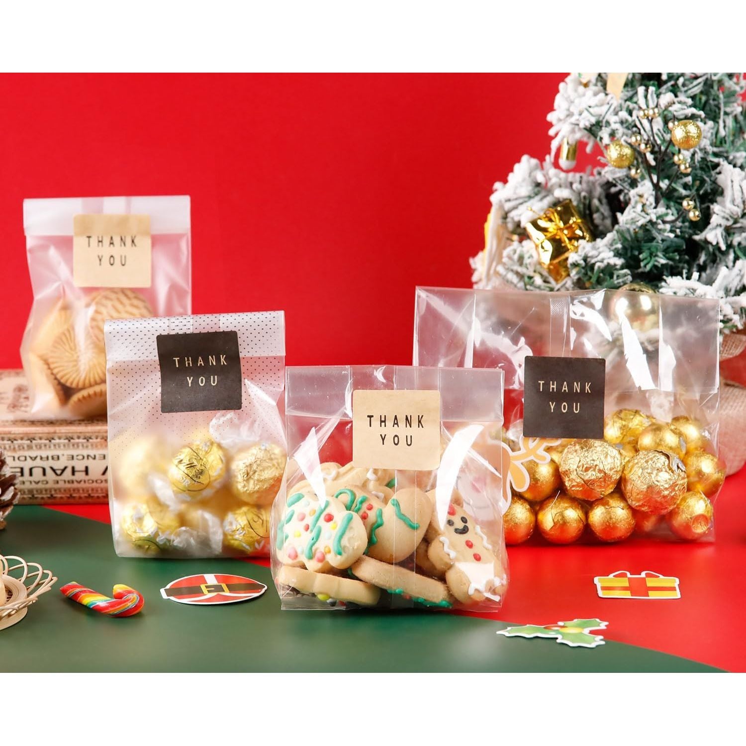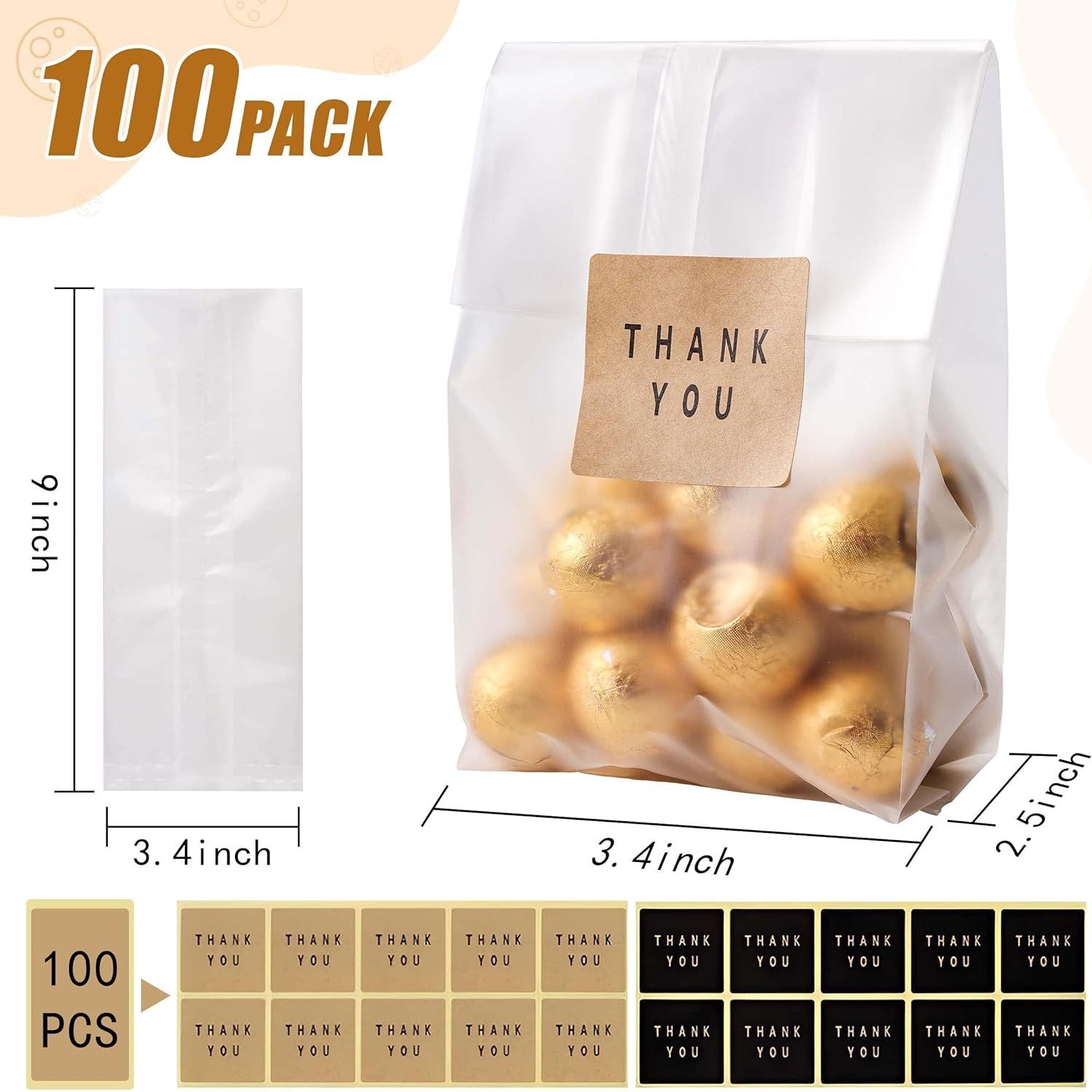 - Package Included: 100 pcs clear cookie bags with 100 pcs thank you stickers.Nice candy bags for packaging
