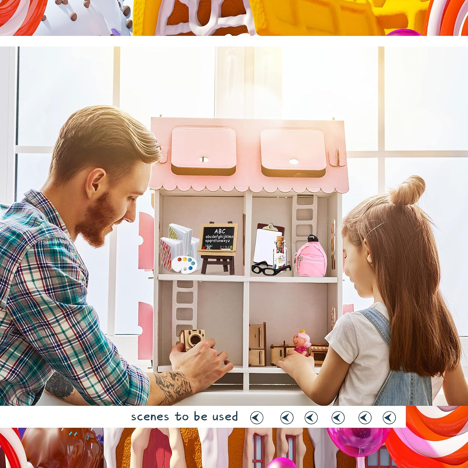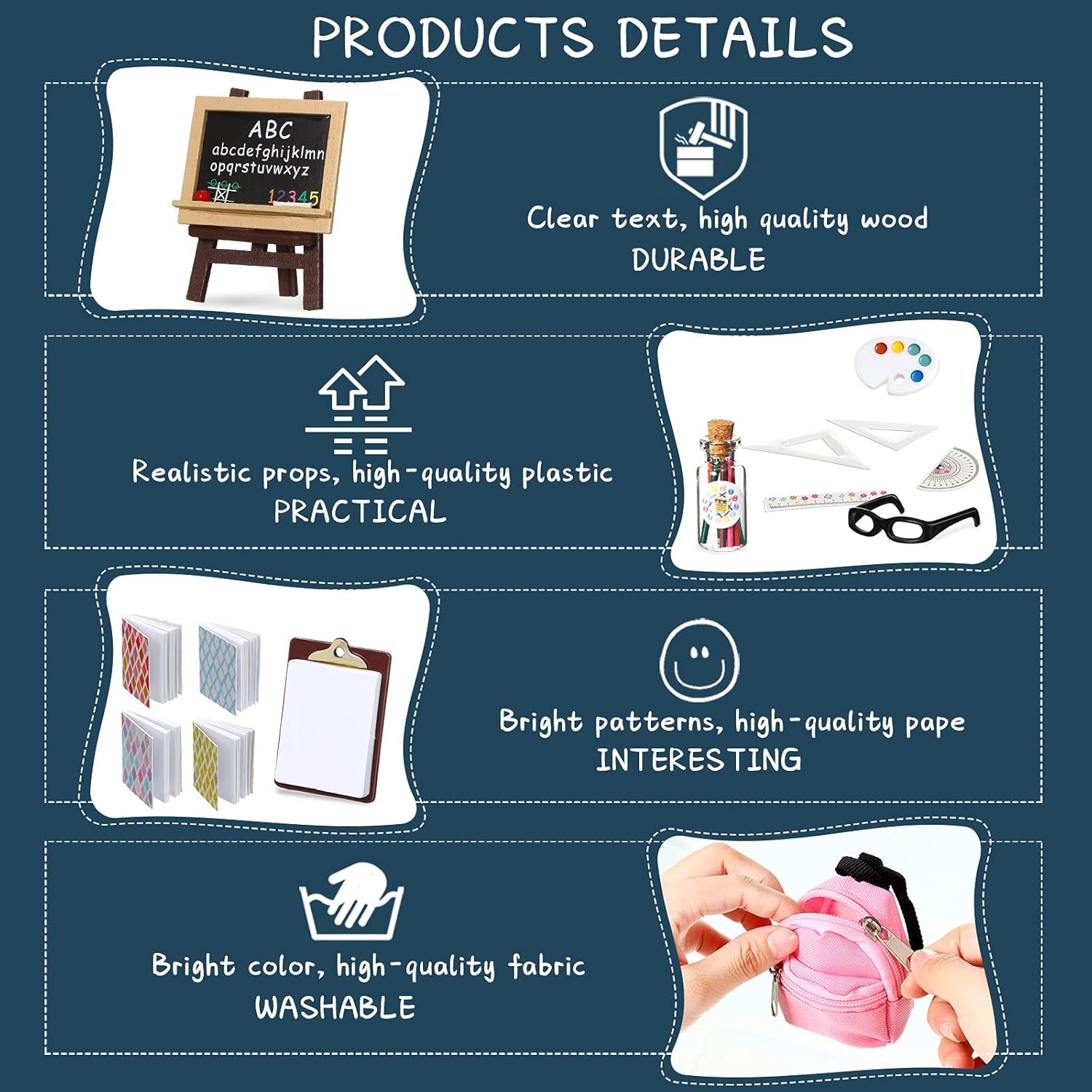 - Chalyna Zomiboo 14 Pcs Mini Doll School Supplies Miniature Dollhouse Stuff Accessories for 11.5 Inch Doll DIY Toy Set Include Miniature Book Backpack Glasses Blackboard Pencil Ruler(Chic Style)