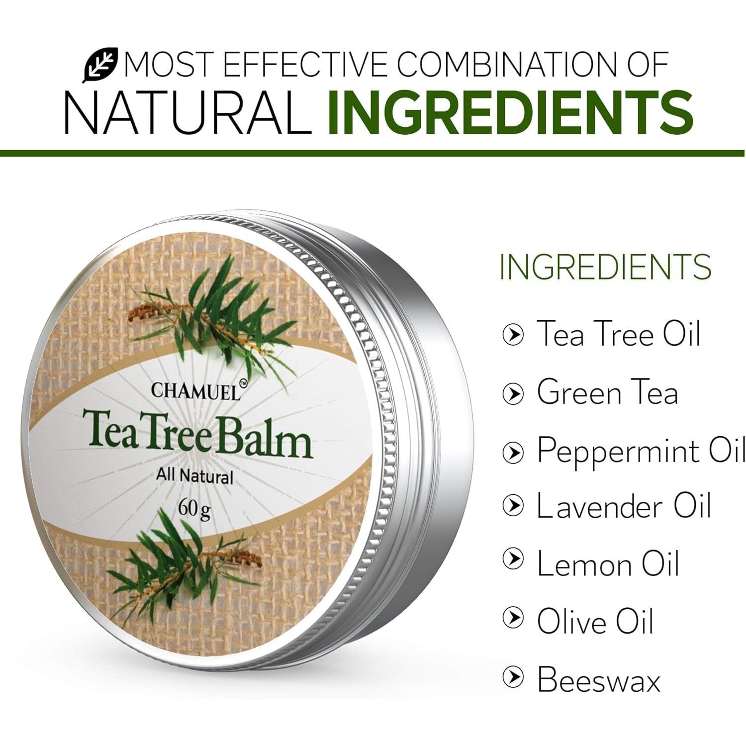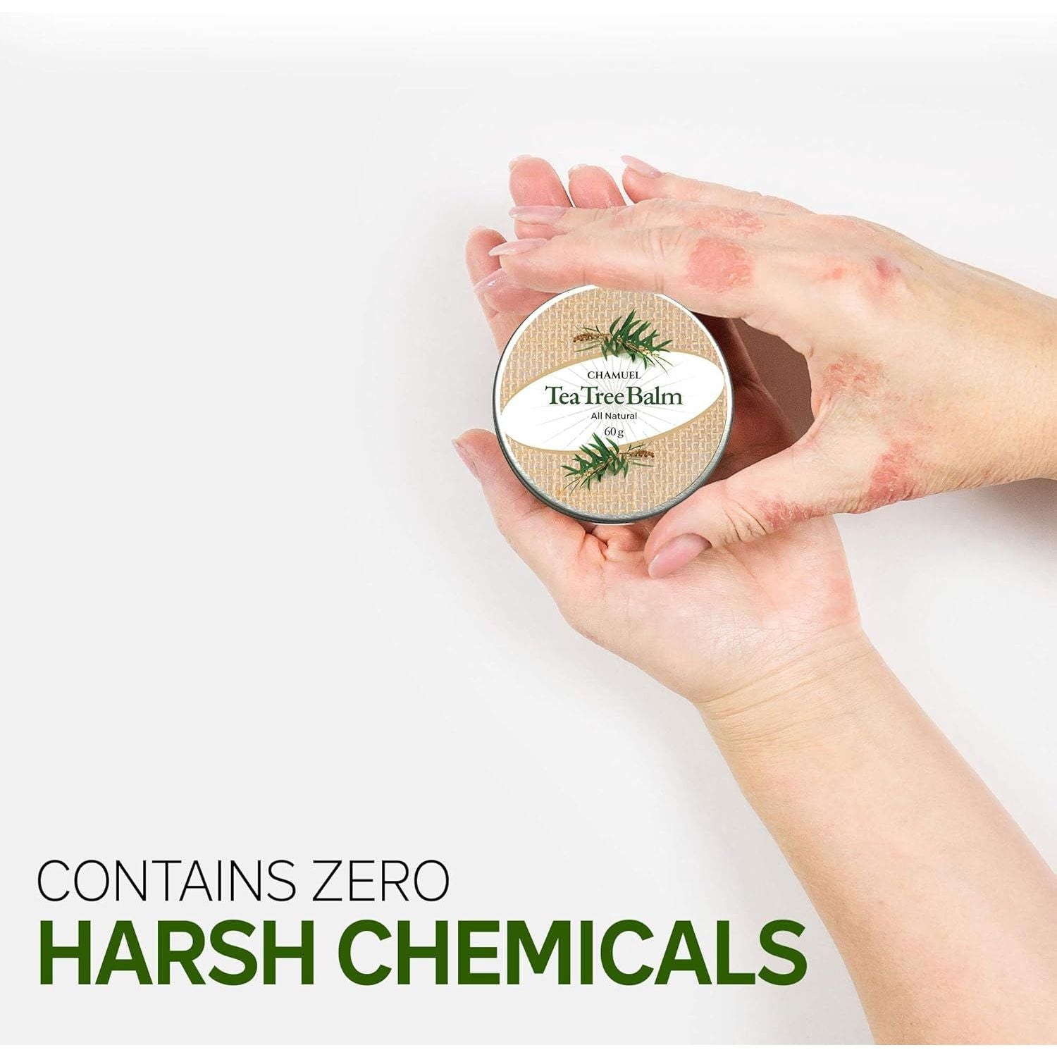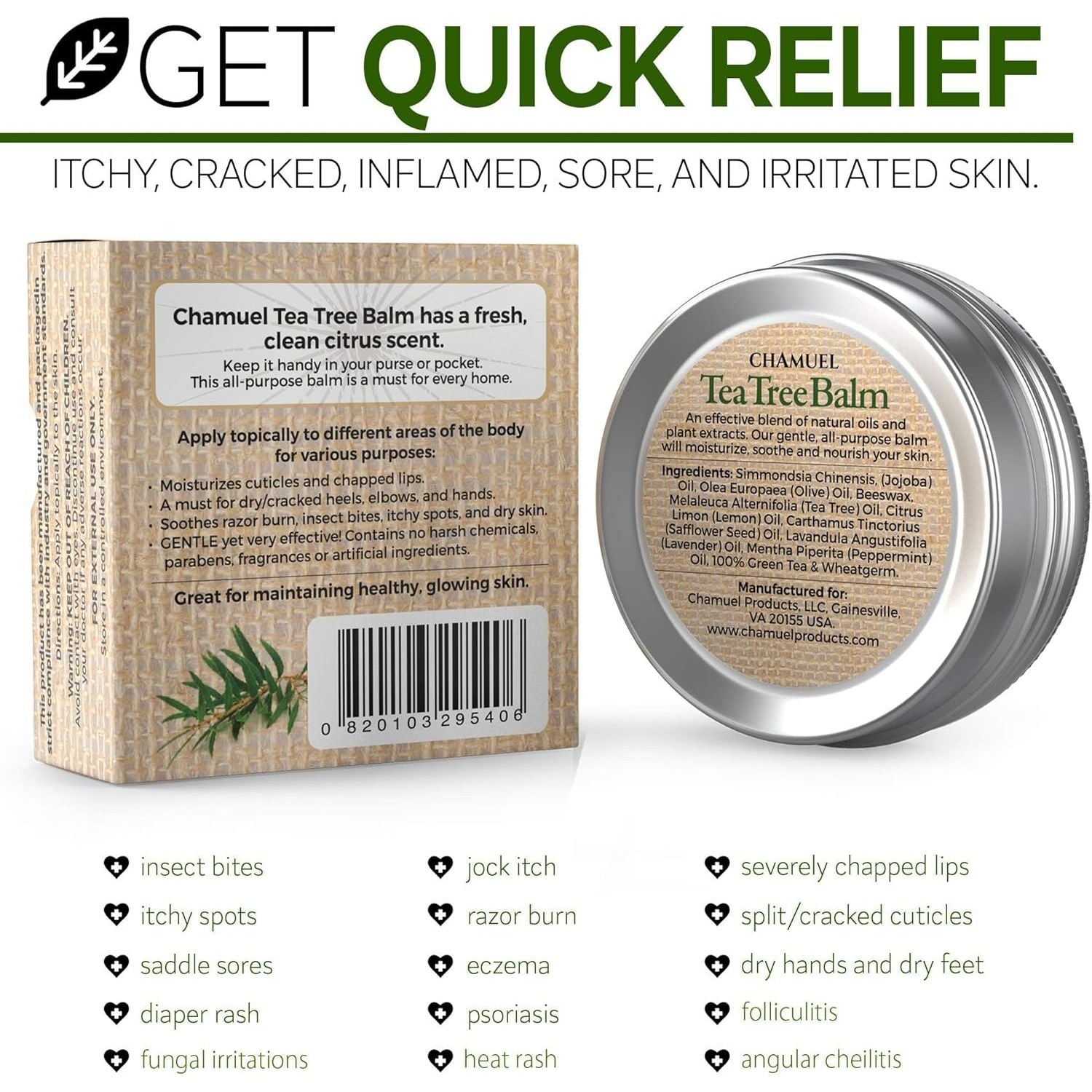 - Chamuel Tea Tree Oil Balm - All Natural | Great Cream for Soothing Eczema, Psoriasis, Rashes, Jock Itch, Insect Bites, Folliculitis, Acne, Itches, Cracked Heels, Cuticles, Saddle Sores & more!