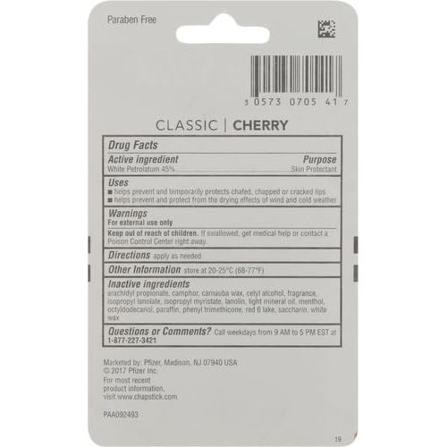 - ChapStick Classic Skin Protectant Flavored Lip Balm Tube, Cherry Flavor, 0.15 Ounce (Pack of 3)