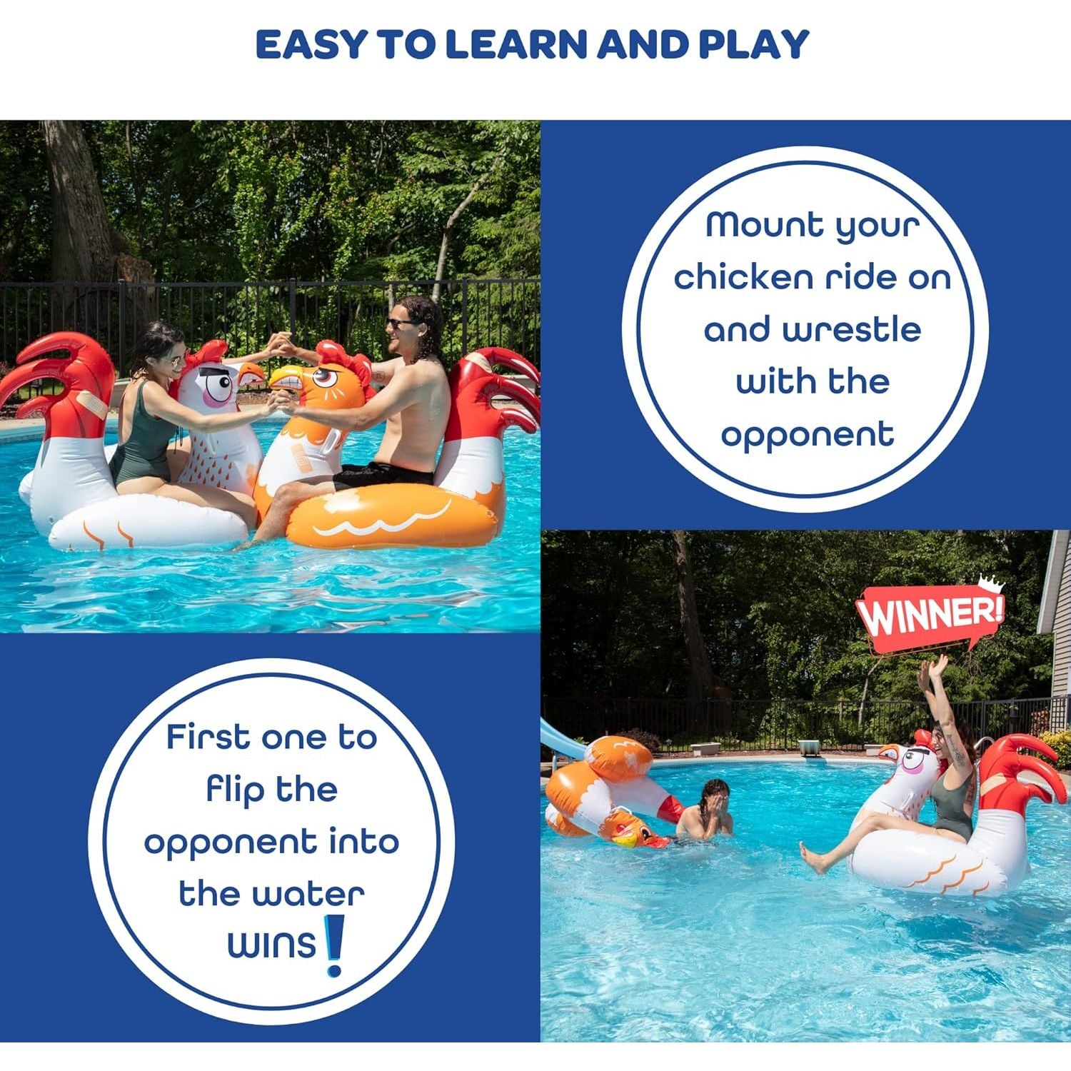 - Chicken Fight Inflatable Pool Float Game Set- Includes 2 Giant Battle Ride-Ons- Flip Your Friends to Win- Outdoor Swimming Party Activities Fun w Kids Family Adults, Durable PVC Material