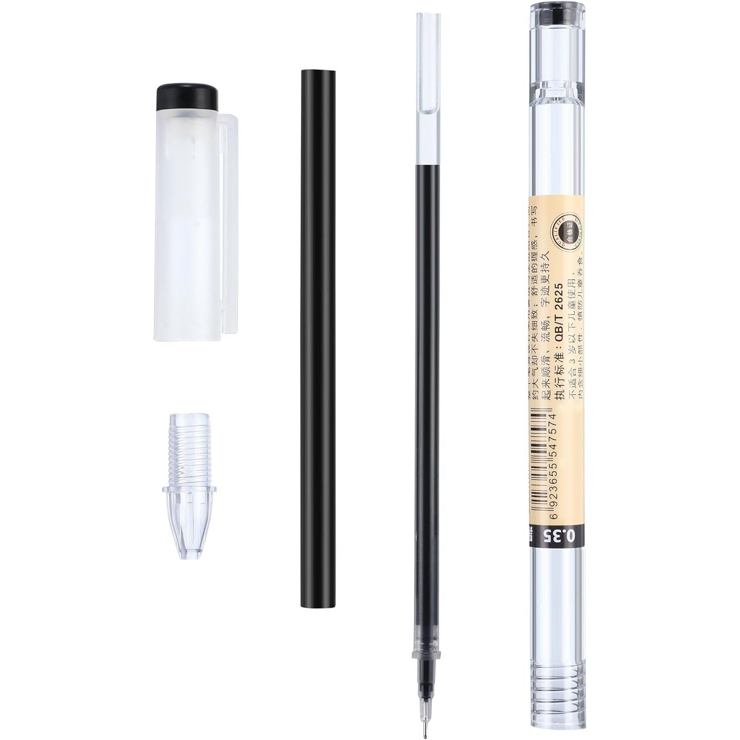 0.35mm Black gel ink pen extra-fine ballpoint pen for office school stationery supply 12 packs Features: Extra-fine medium point makes it easy to write and assures smooth writing. Transparent hull make you can clearly see the ink supply. Liquid gel ink dries so fast, no smears, no smudges, no globs. Wide application: Ballpoint pen to sketch, draw, color, doodle, write and get creative in a fun and skilled way. Greeting cards, party invites, letters to friends and family, arts and crafts, decoration. Package includes: 12 x 0.35mm Black ink pens