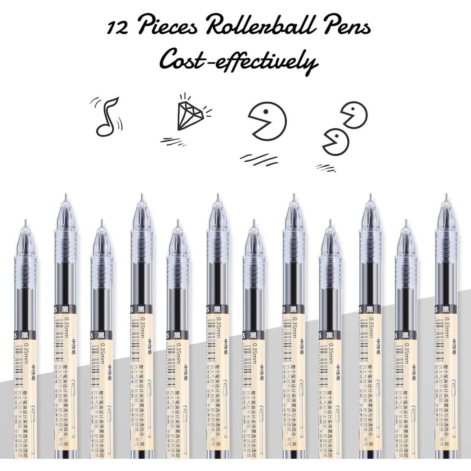 • Package includes: come with 12 packs black ink pens, the roller ball pens come with extra fine point (0.35 mm) and black ink for precise writing, small and delicate, fashionable and durable
