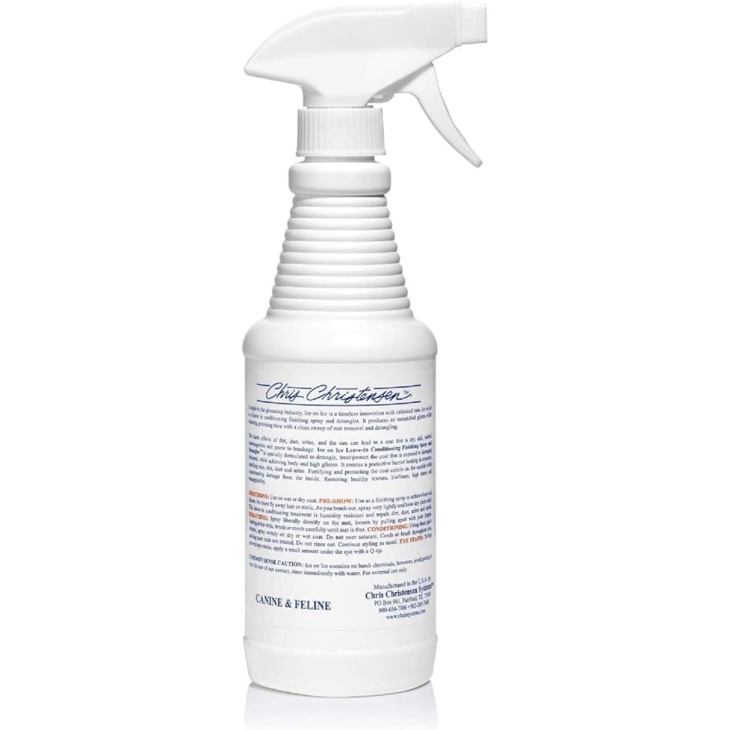 - Chris Christensen Ice on Ice Detangler and Finishing Dog Spray, Groom Like a Professional, Ready to Use, Helps Brush/Comb Glide Through Coat, Conditions, No Residue, All Coat Types, Made in USA, 16 oz