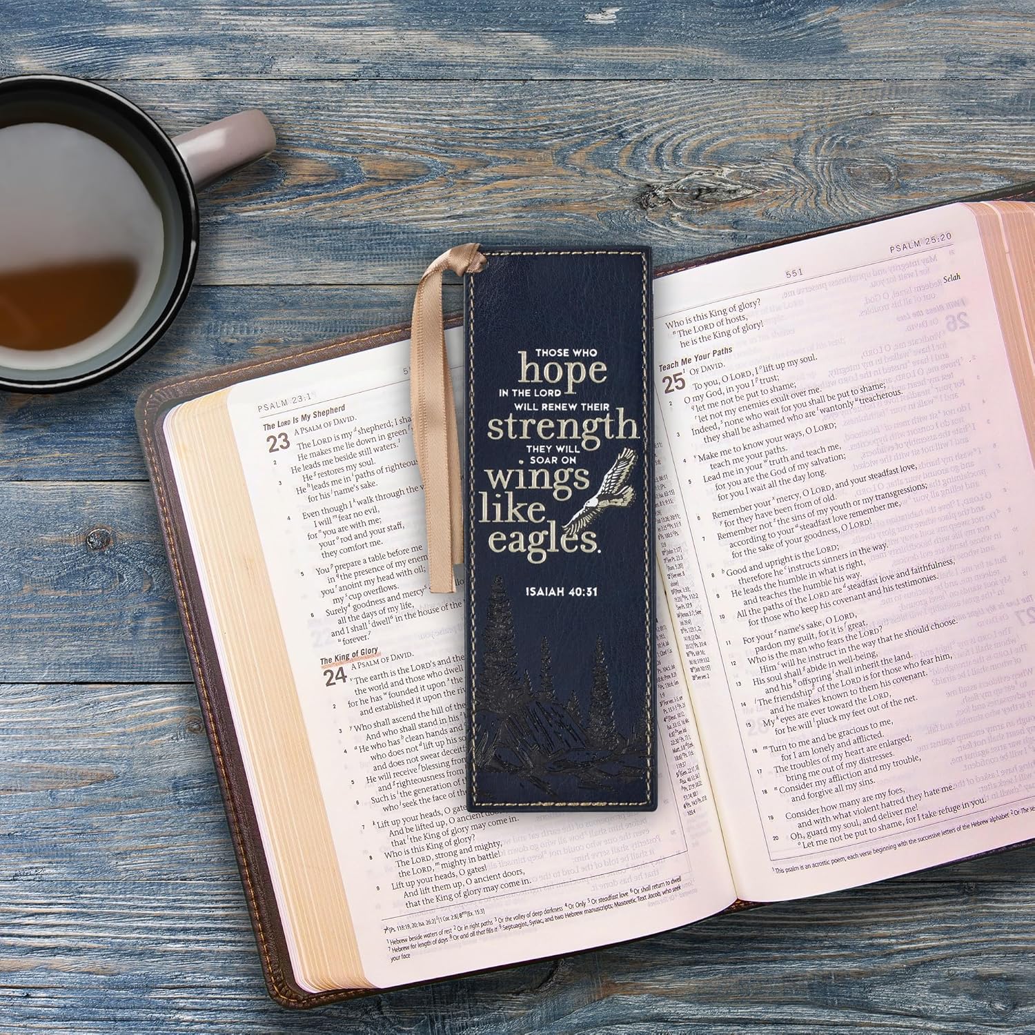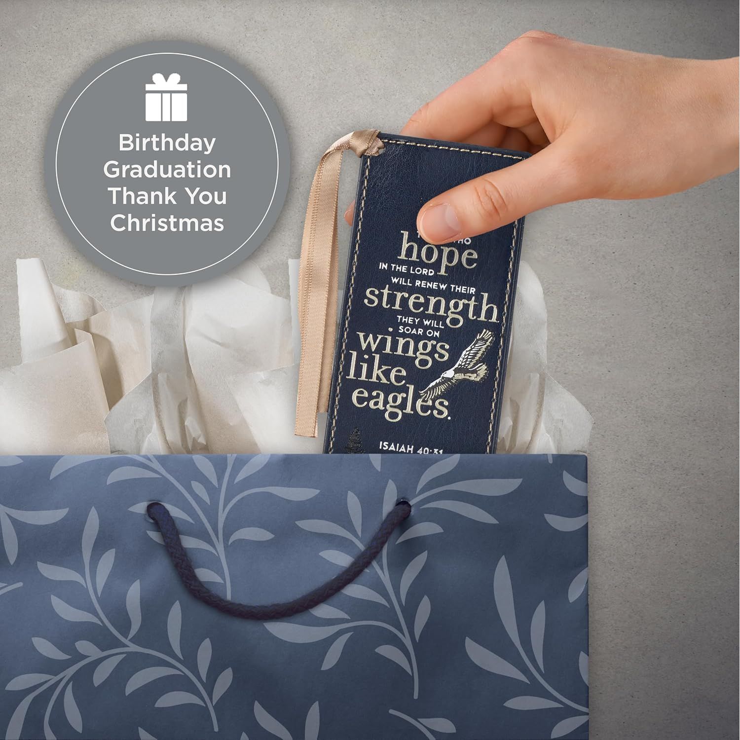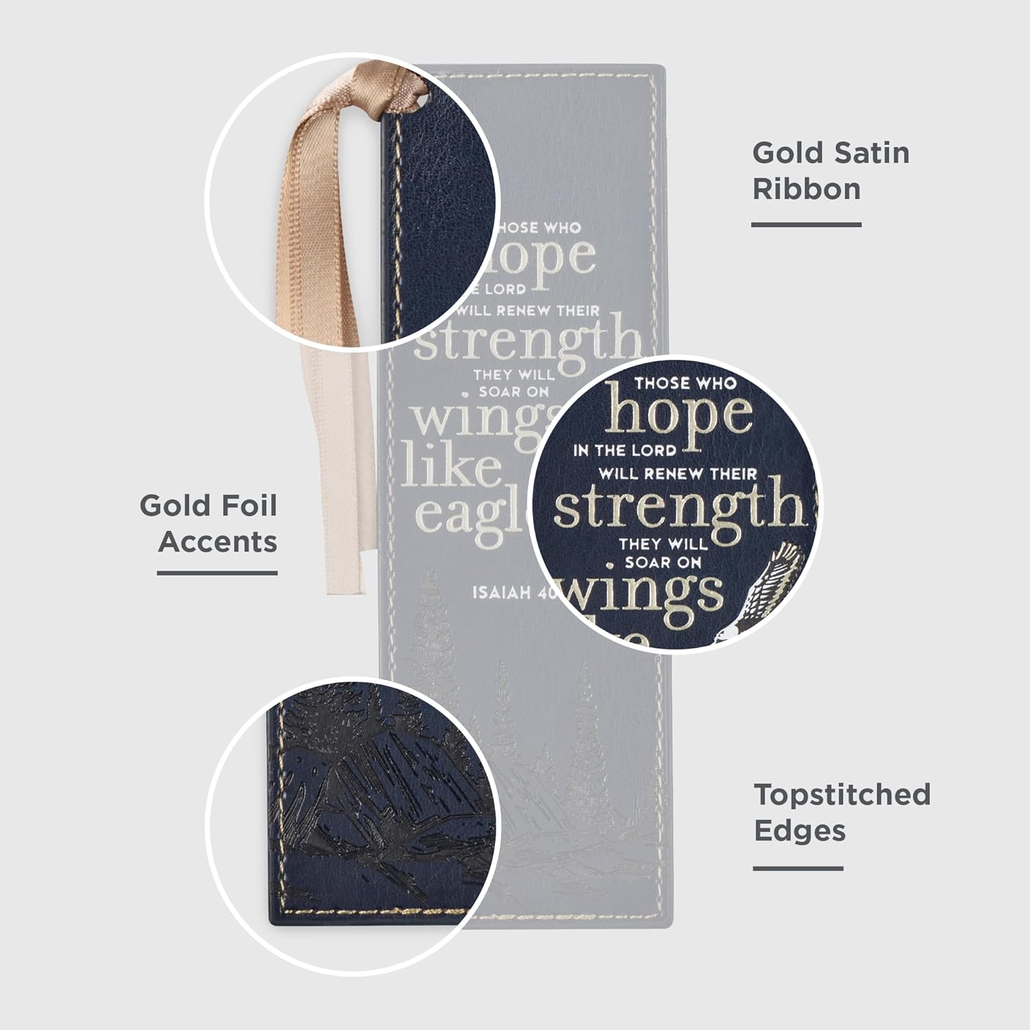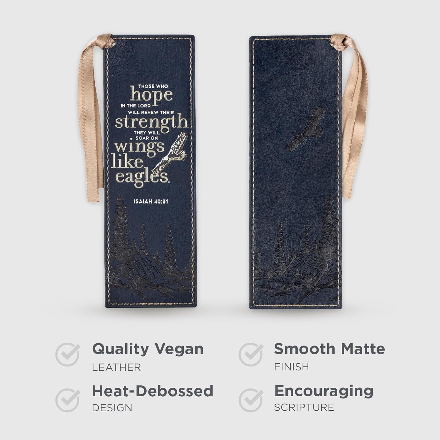 - Christian Art Gifts Premium Vegan Faux Leather Scripture Bookmark for Men & Women: On Wings Like Eagles - Isaiah 40:31 Inspirational Bible Verse, Heat-Debossed, Reading Accessory w/Tassel, Navy Blue