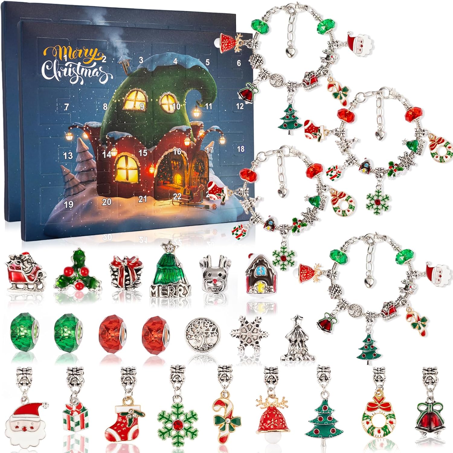- Christmas Advent Calendar Bracelets 2025 for Girls 24 Days Xmas Countdown Calendar DIY Jewelry Making Kit Gift 22 Charm Beads 2 Bracelets for Kids Teens Women