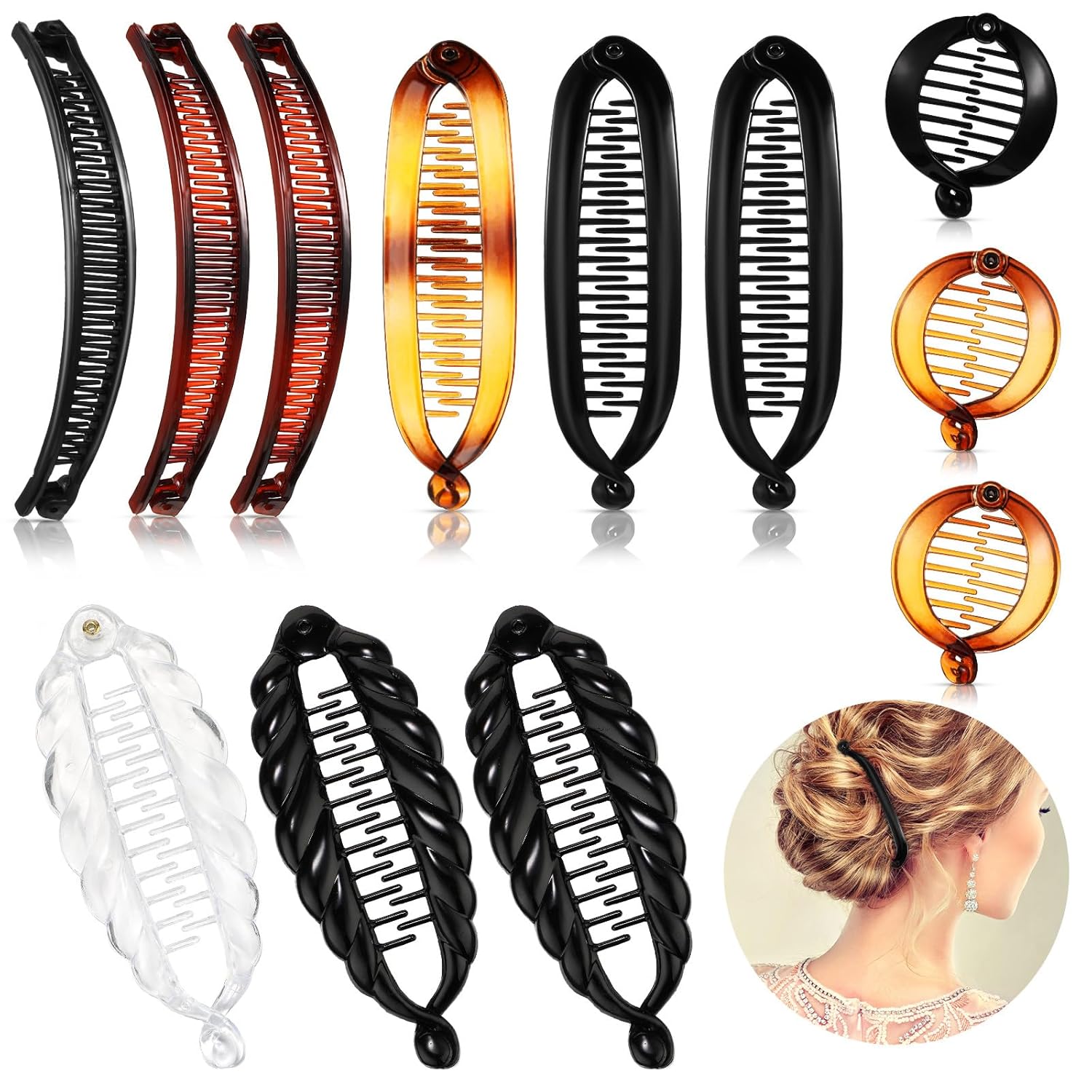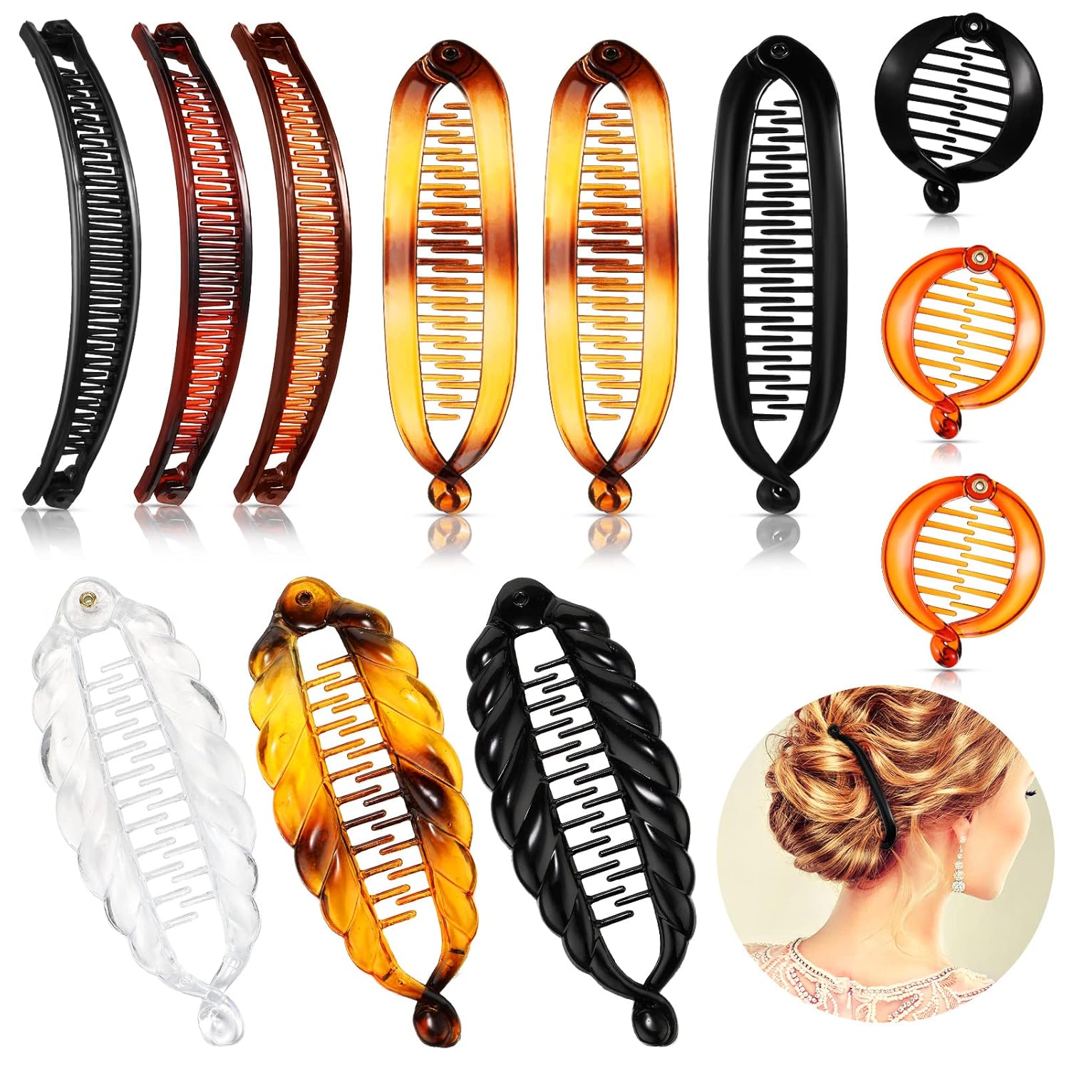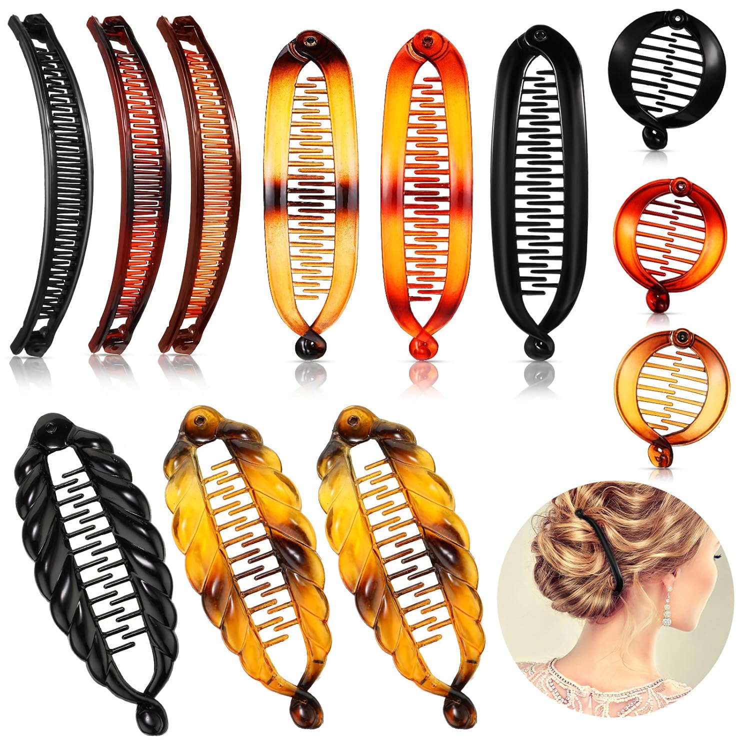 - Delicate pattern design: 12 pieces banana hair clips are provided, 4 different styles in total, which includes 3 pieces plastic double side banana clips, 3 pieces fishtail ponytail holder combs, 3 pieces pointed fish clip, 3 pieces large round comb clips, retro and classical, meet with current trends
