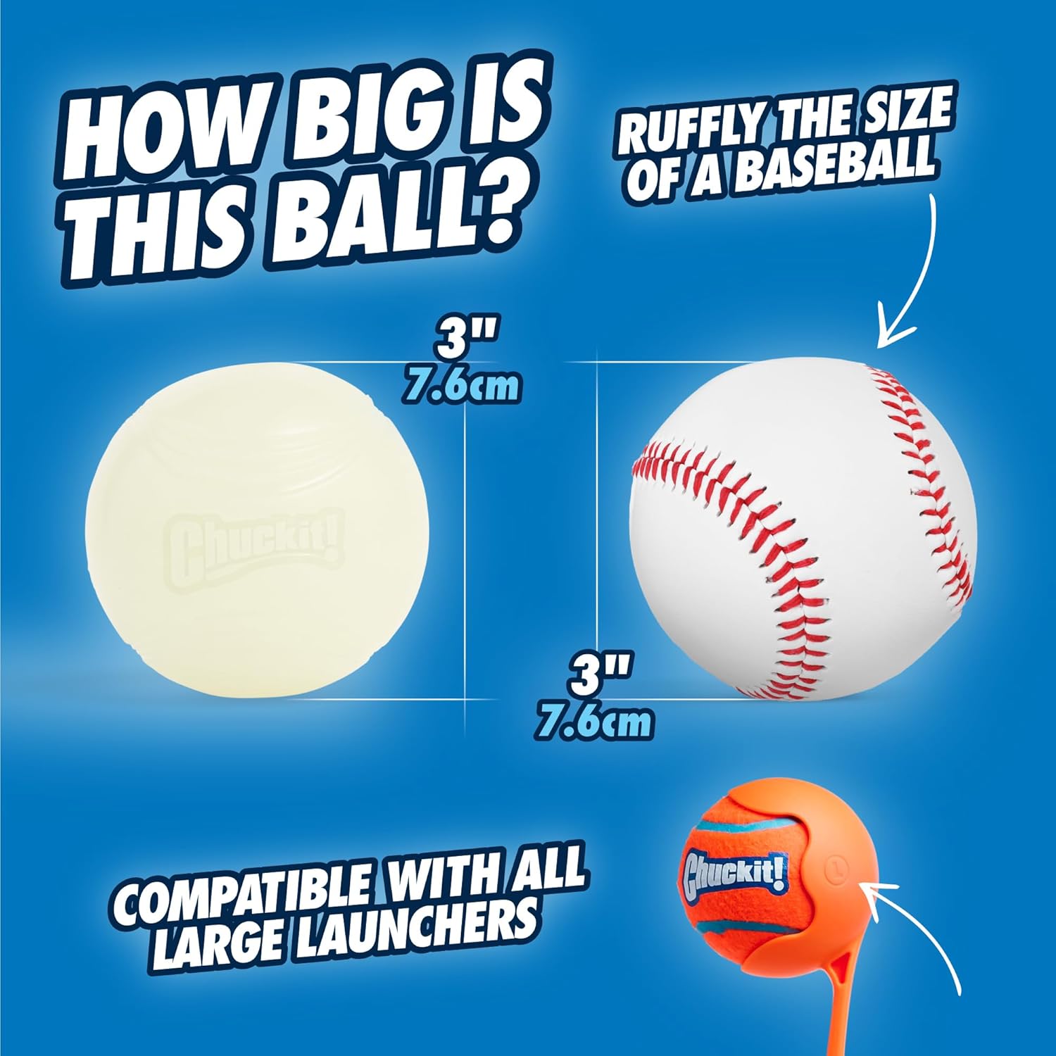 - IDEAL FOR NIGHTTIME FETCH: Compatible with large Chuckit! Launchers, these 3-inch glow in the dark balls make fetch exciting for dogs weighing 60-100 lbs