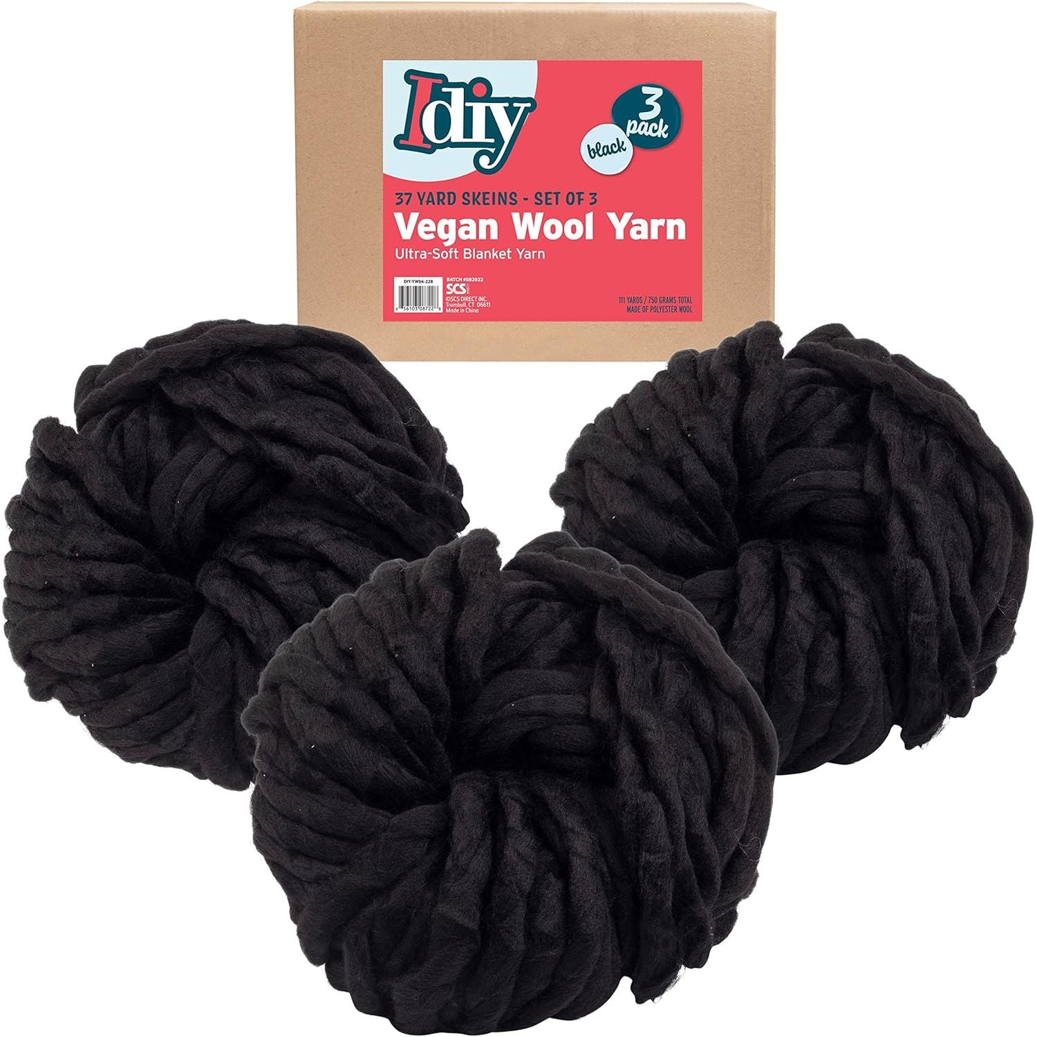- Chunky Vegan Wool Yarn 3 Pack (111 Yards Total, 37 Each Skein) - Black - Fluffy Polyester Yarn Perfect for Soft Throw & Baby Blankets, Arm Knitting, Crocheting & DIY Crafts and Art Projects