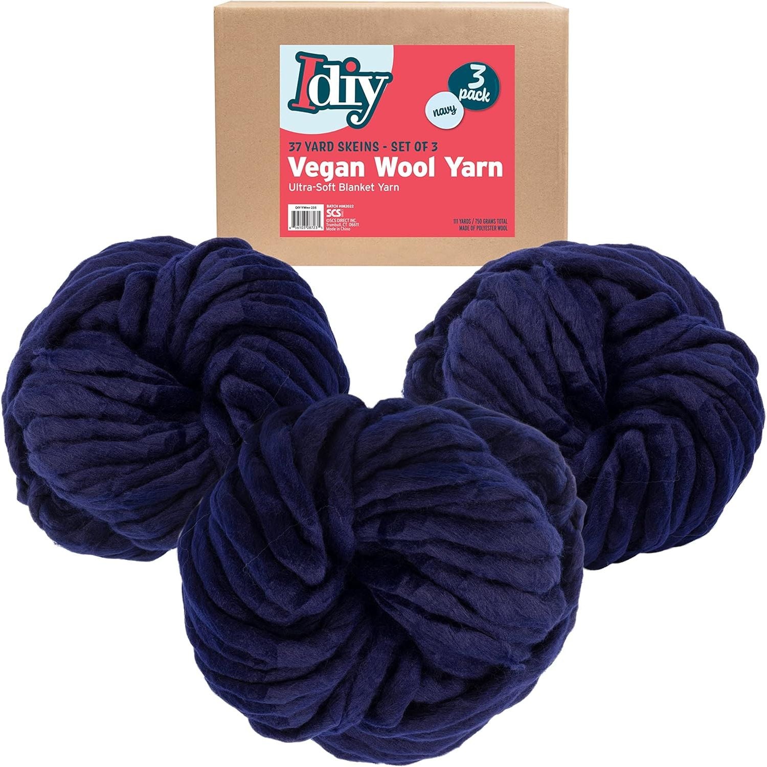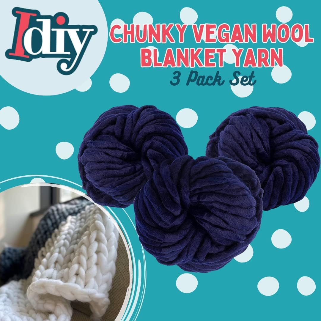 - Chunky Vegan Wool Yarn 3 Pack (111 Yards Total, 37 Each Skein) - Navy Blue - Fluffy Polyester Yarn Perfect for Soft Throw & Baby Blankets, Arm Knitting, Crocheting & DIY Crafts and Art Projects