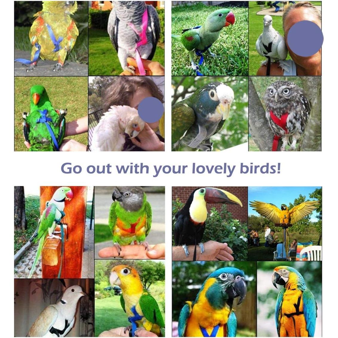 - CIEOVO Bird Harness, Adjustable Parrot Nylon Leash with Anti-bite Design for Outdoor Activities Training, Suitable for Eastern Bluebonnet Parrot, Cockatoo, Parakeet, Doves 6.2ft (S)