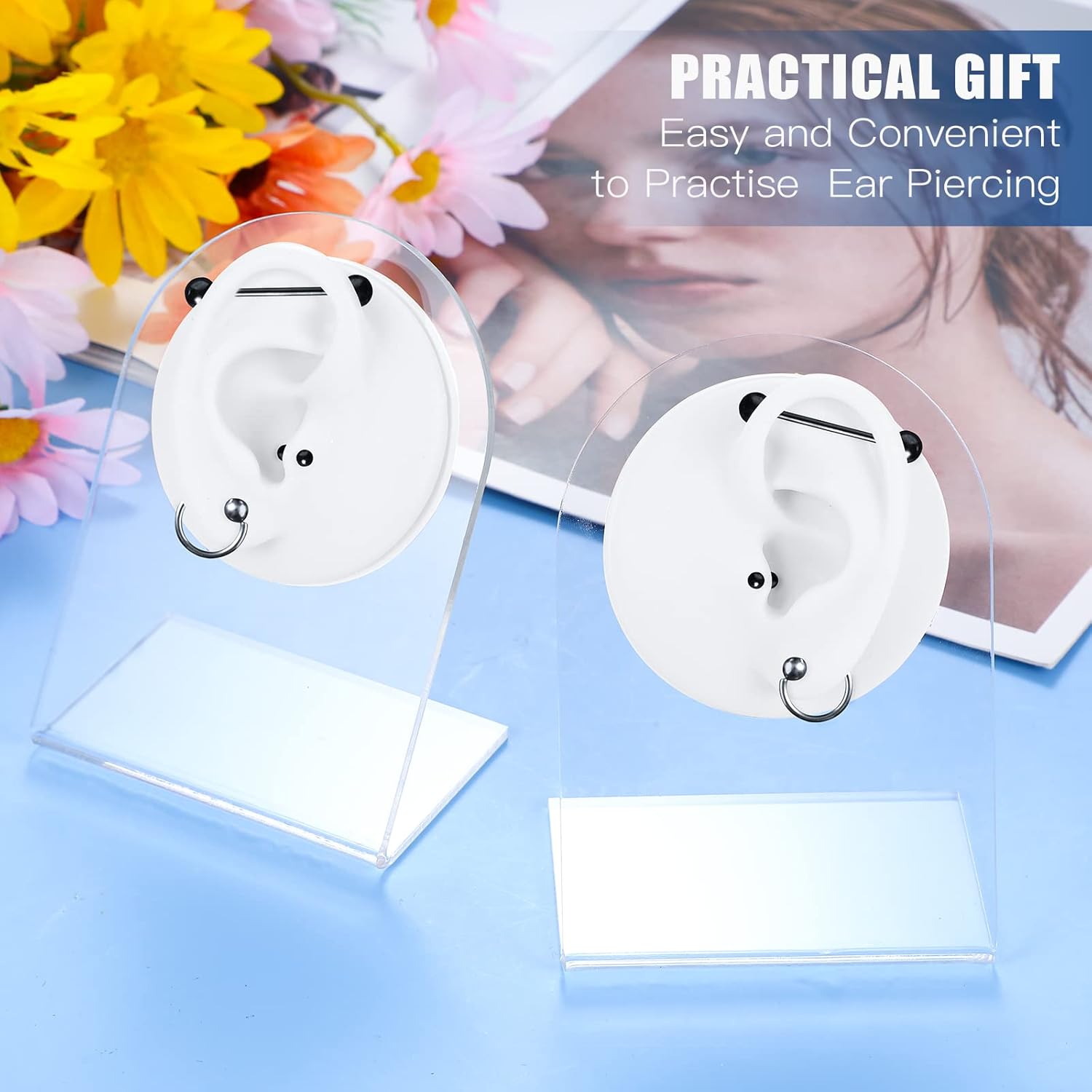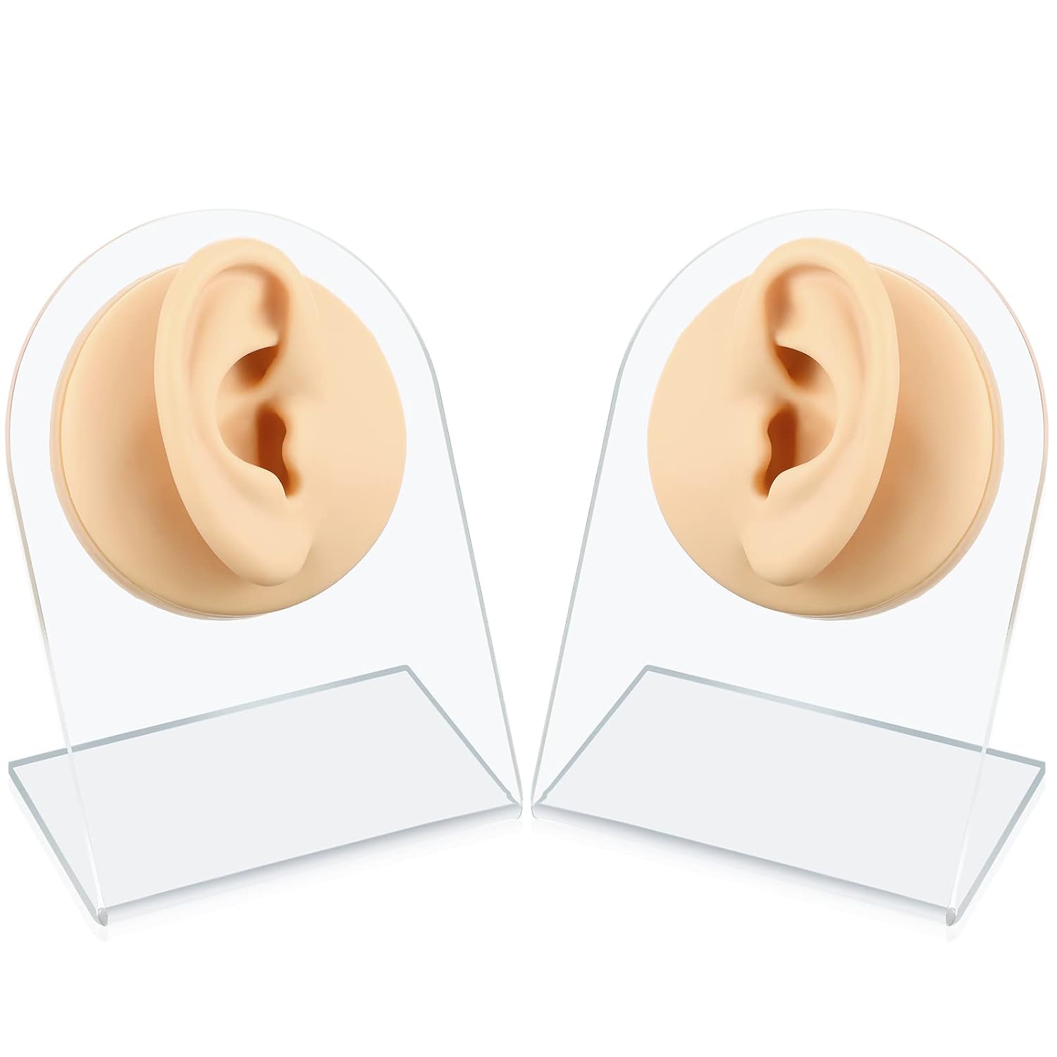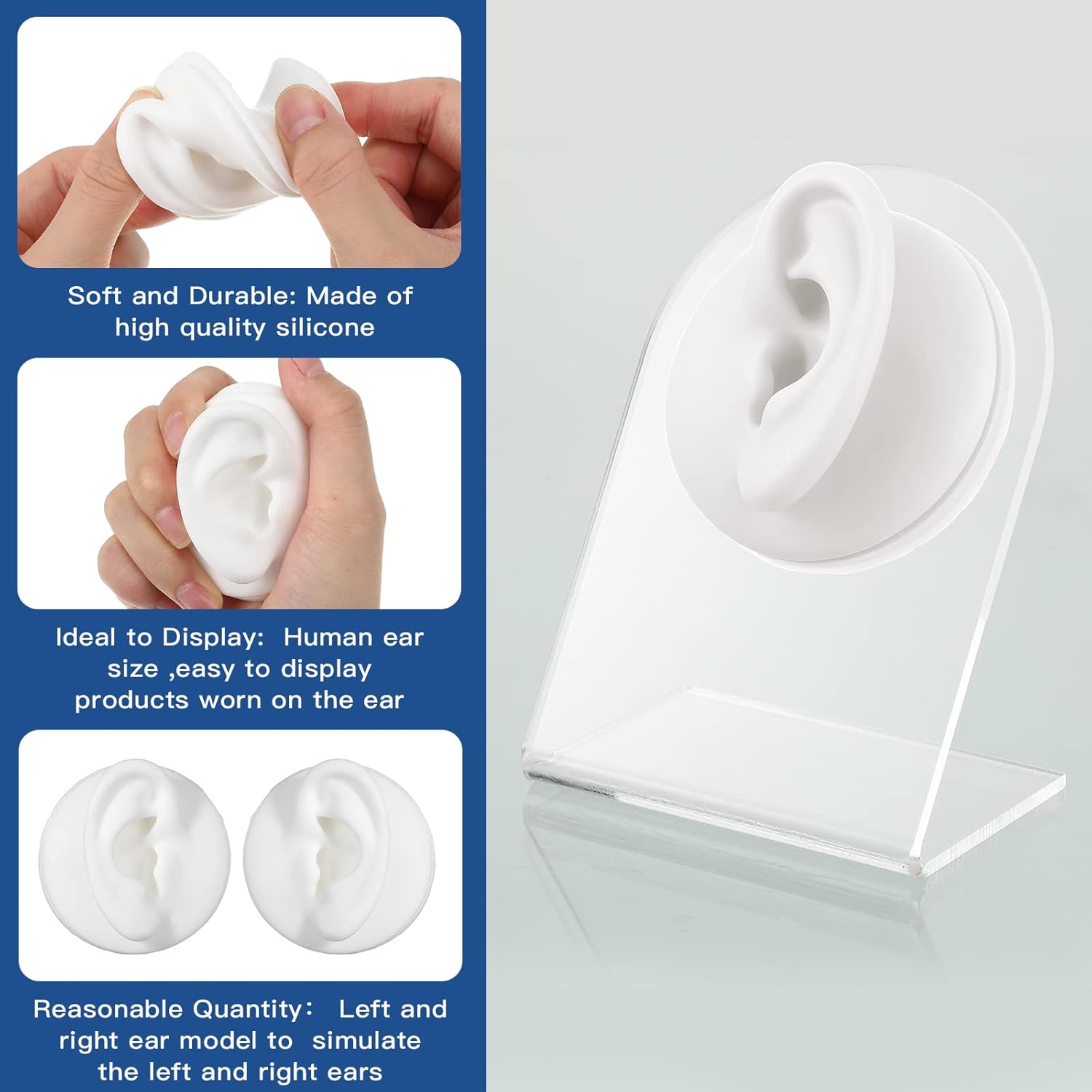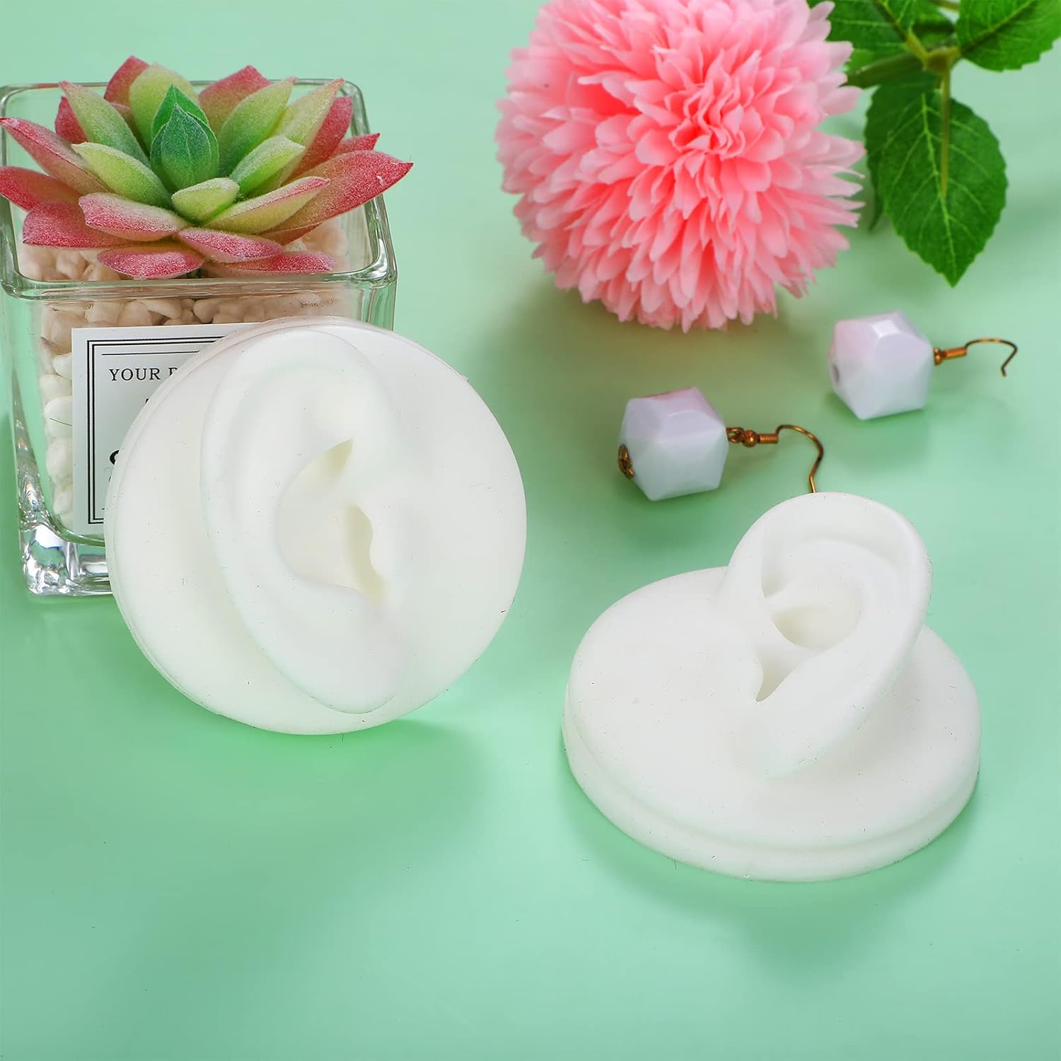 - Cindeer 2 Pcs Flexible Silicone Ear Model Reused Soft Mold Fake Ear for Earrings Jewelry Display for Piercing Practice with Acrylic Stand(White)
