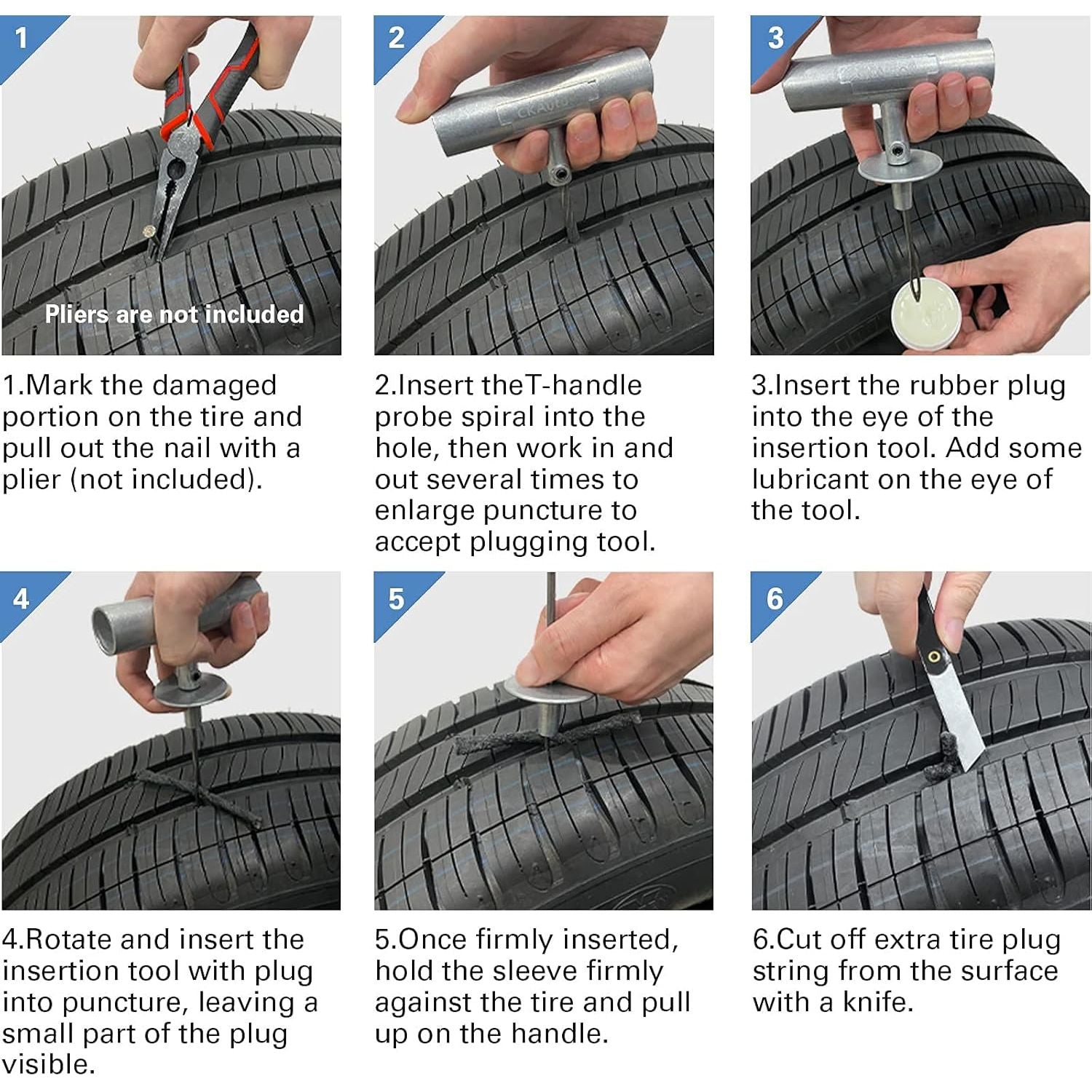 - 【Easy To Use】-- Repair punctures for all tubeless tire without remove tire from rim, detailed instruction ensures everyone can repair their flat tire in a right and quick way, professional repair without professional skill required.