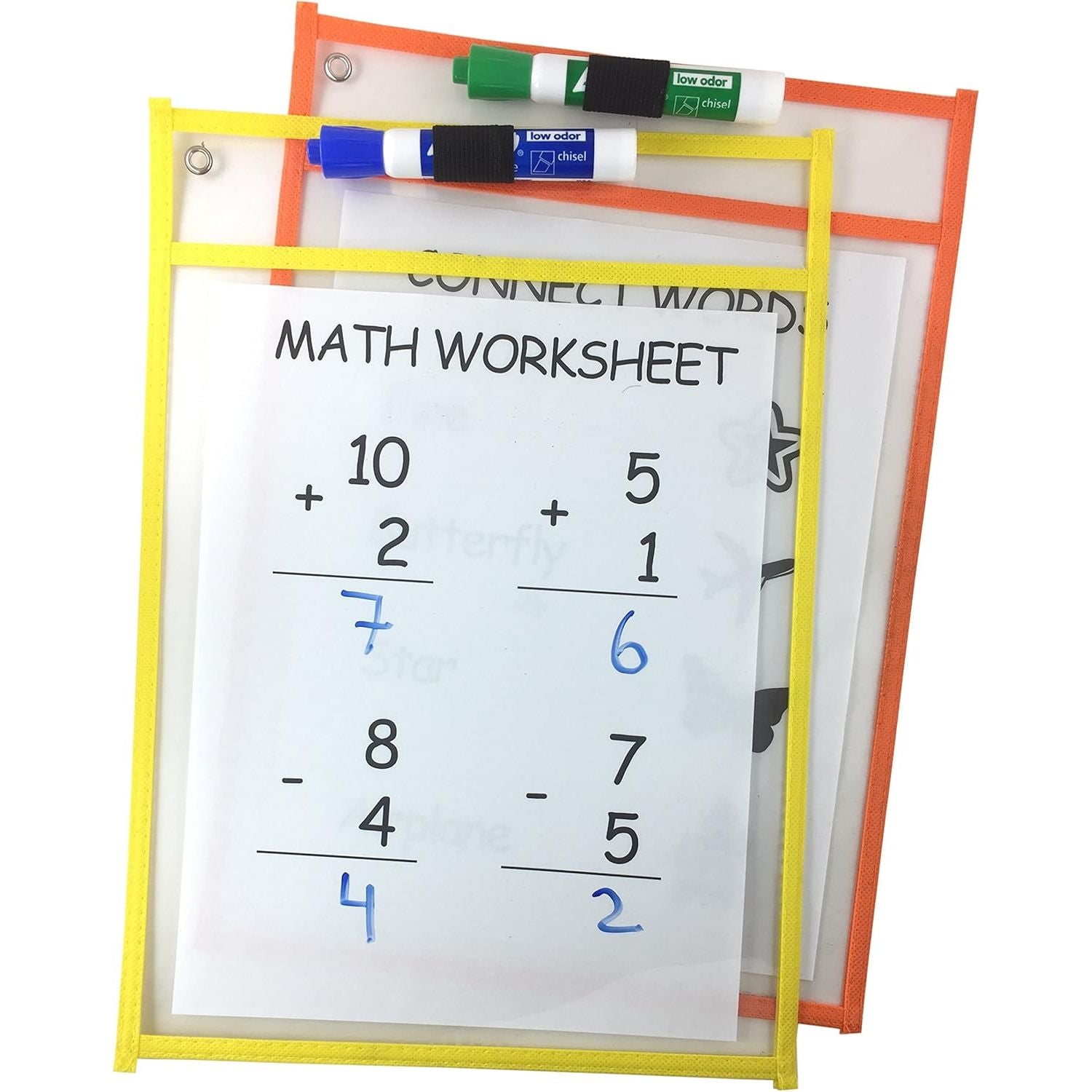 - VERSATILITY - This pack of 6 dry erase pocket sleeves or worksheet sleeves are perfect for protecting and reusing student worksheets. Measuring 14 inches by 10.25 inches so it will easily accommodate most student activity sheets