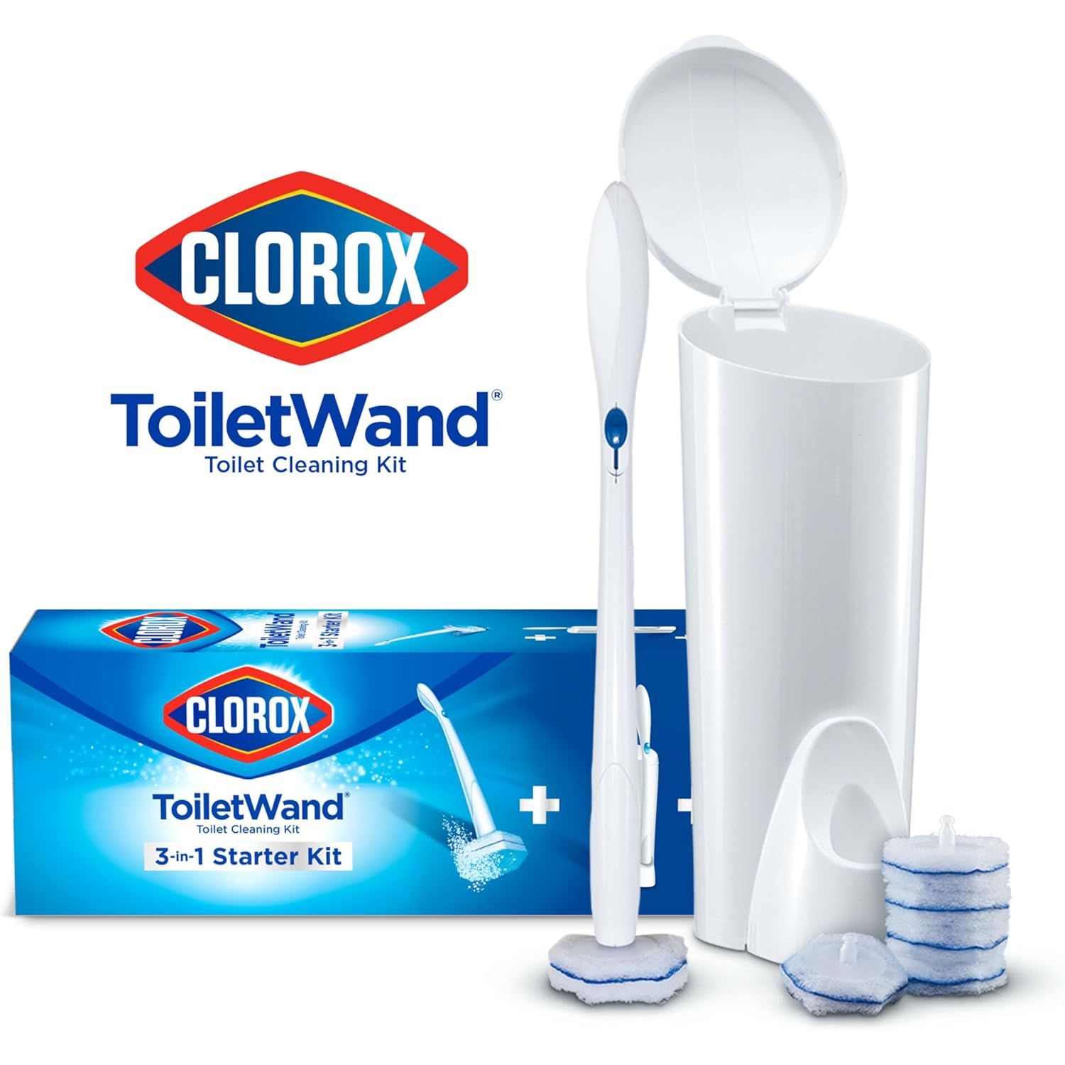 - WAND AND CADDY: Clorox ToiletWand comes with a long handle to help you clean from a distance, and a caddy to conveniently store scrubbing pad refills