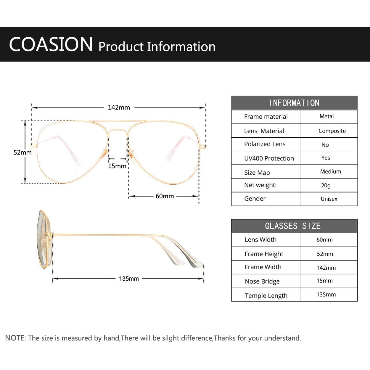 - COASION Classic Non prescription Aviator Glasses Clear Lens Metal Frame Eyewear for Men Women