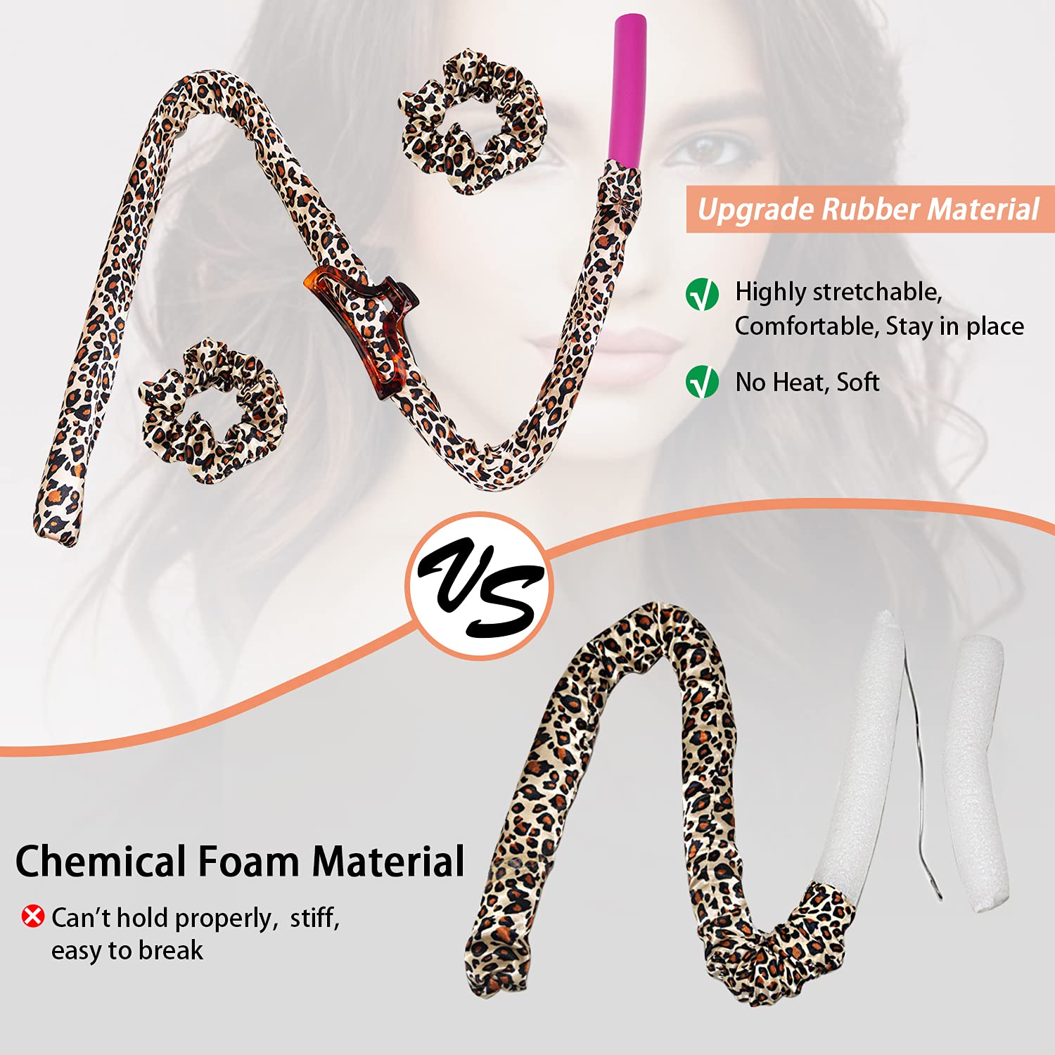 - cobinaan Women Heatless Curlers For Long Hair, Headband Sleeping Soft Rubber Rollers, Curling Ribbon and Rods for Natural Hair (Leopard)