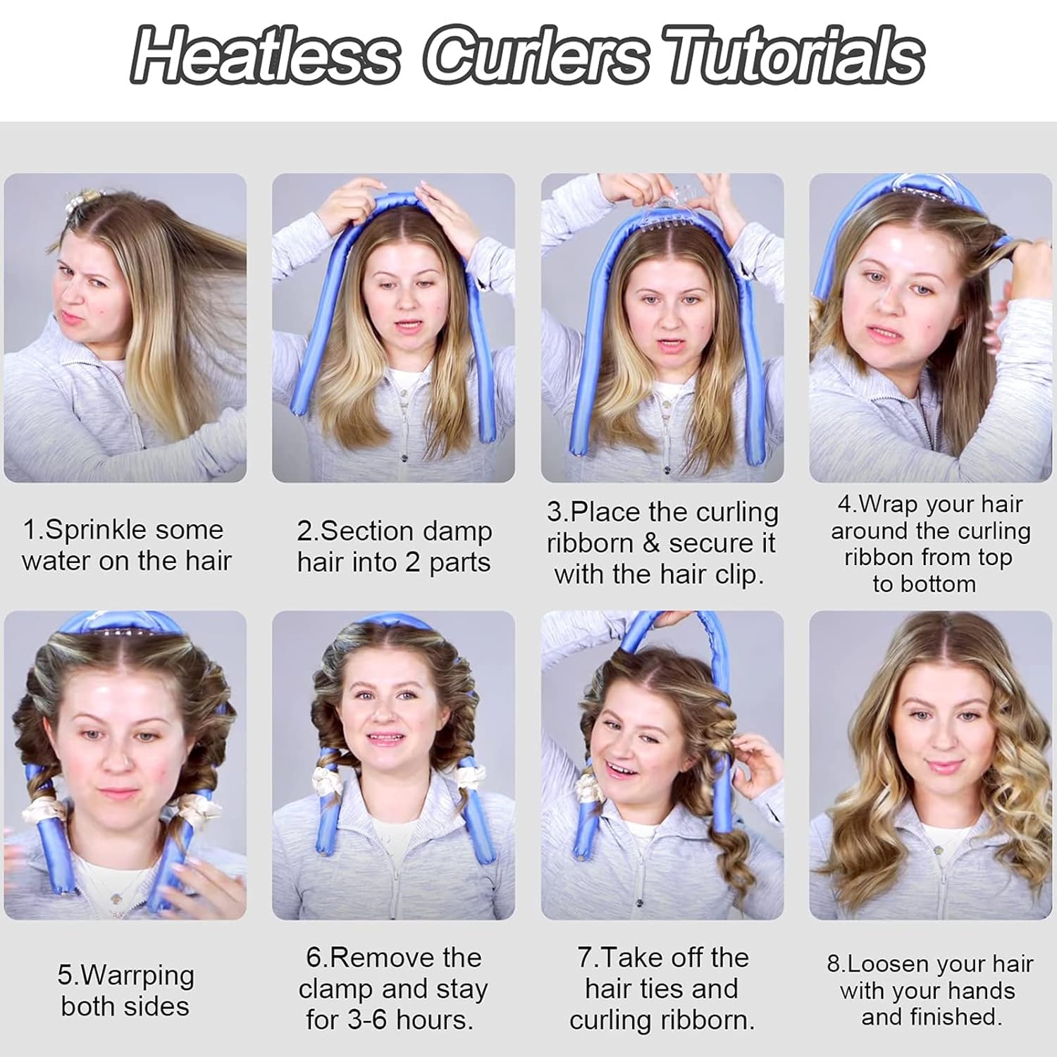- ❤HOW TO USE: Before going to bed, use a fine-tailed comb to separate a small bunch of slightly longer hair, wrap it on the curling rod, and fix it with a rubber band without heating. You will have beautiful curly hair the next morning, and this heatless curlers hair rod headband will not cause any discomfort when sleeping.
